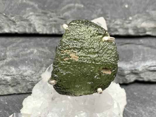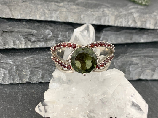 "Mira" Ring- Moldavite & Garnet size 8.75