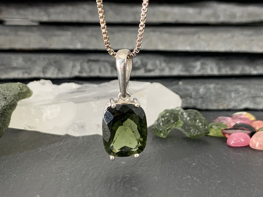 Faceted Moldavite Pendant - Rectangle Shape Pendant