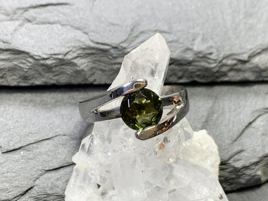 Alya - Moldavite ring, adjustable one of a kind ring with polished Moldavite/ size 8 US
