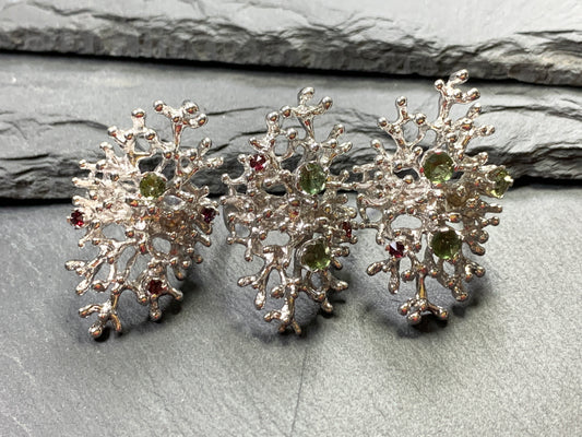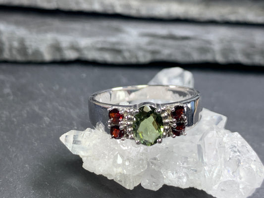 "Mira" Ring- Moldavite & Garnet size 8.75