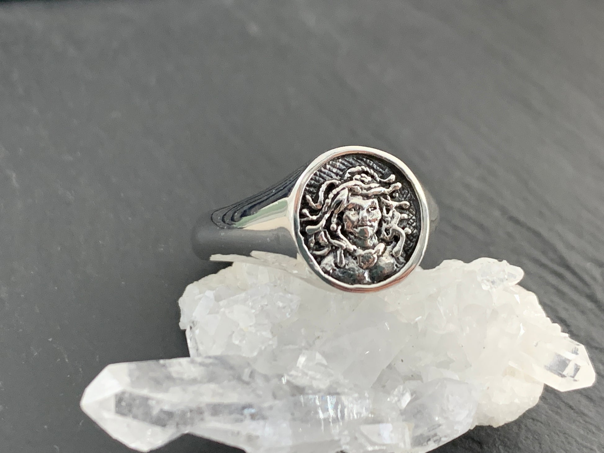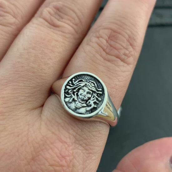 Sterling Silver Medusa Ring – Greek Mythology Jewelry, Ancient Coin Style Ring, Handmade Snake Goddess Signet Ring