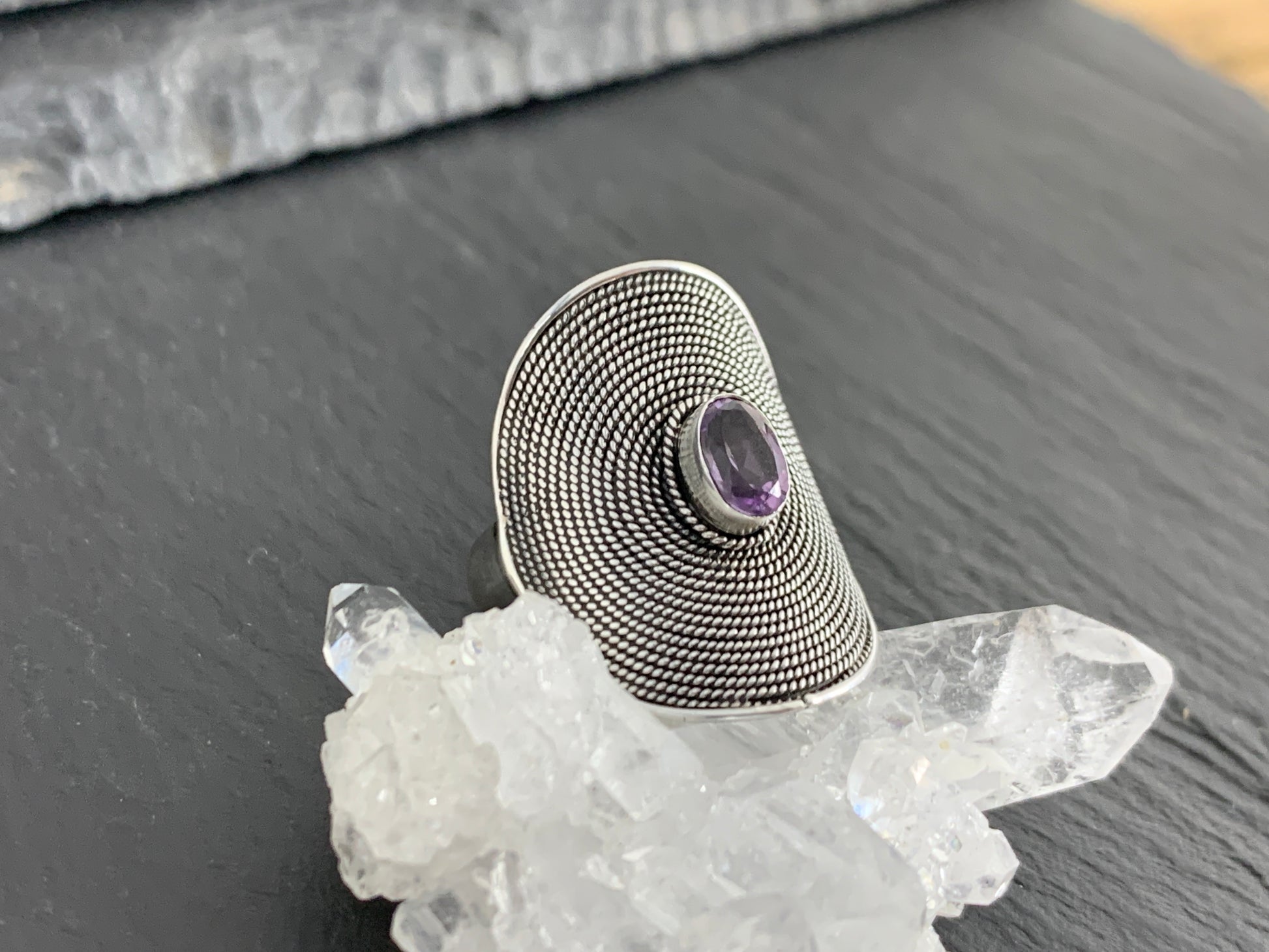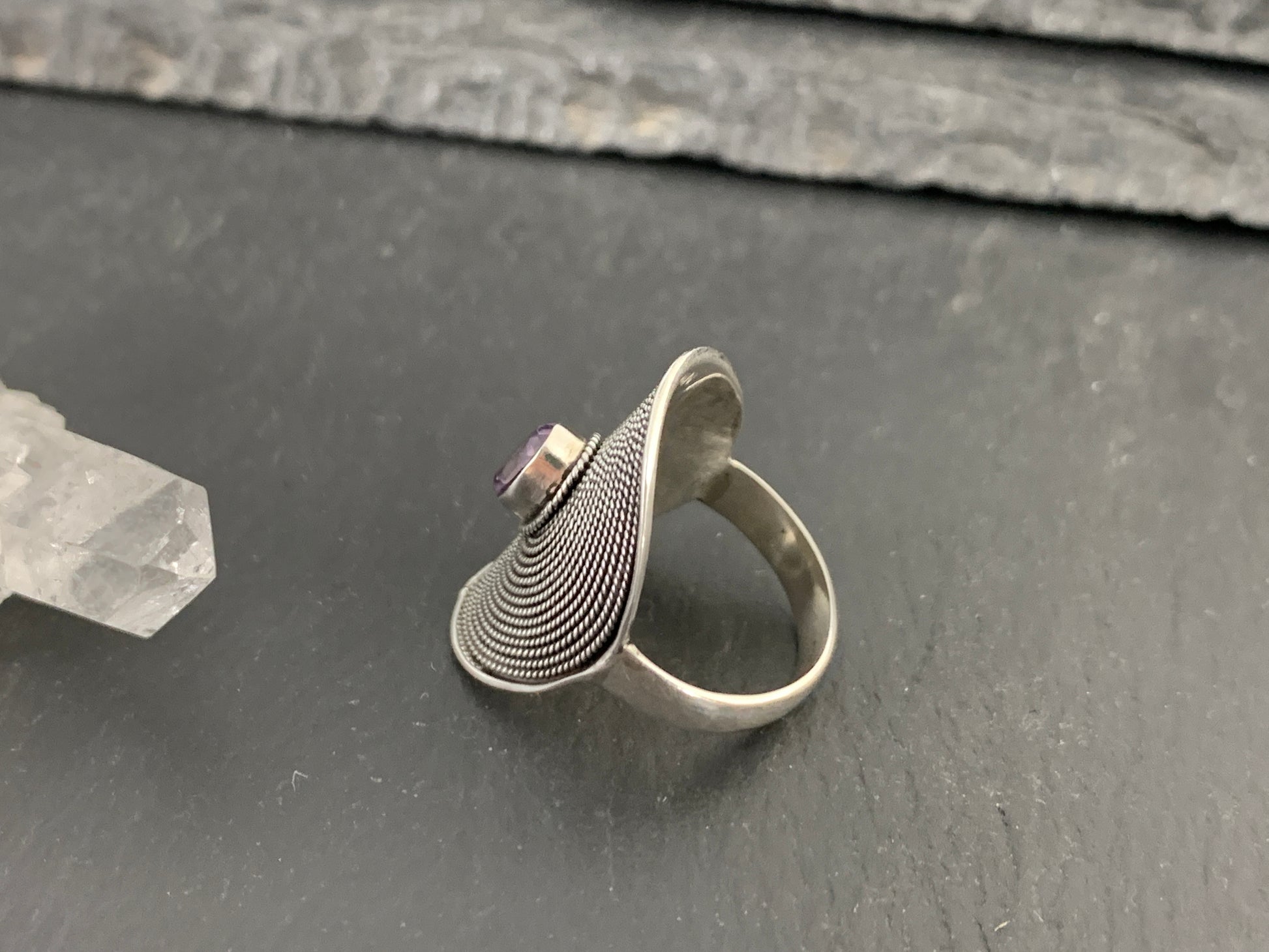 Amethyst Boho Sterling Silver Ring 5.75 US size