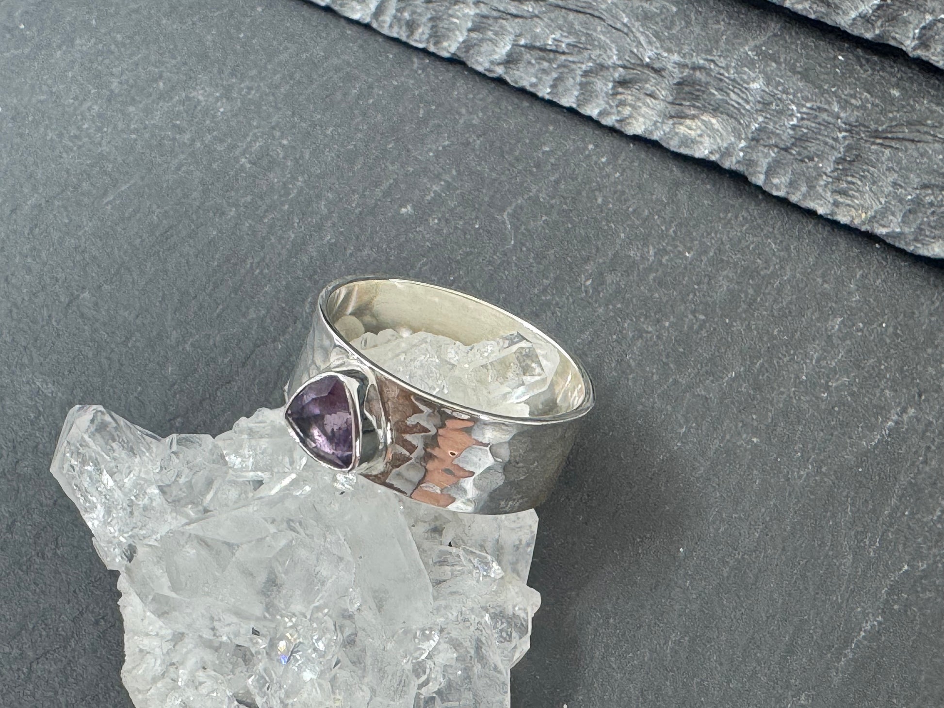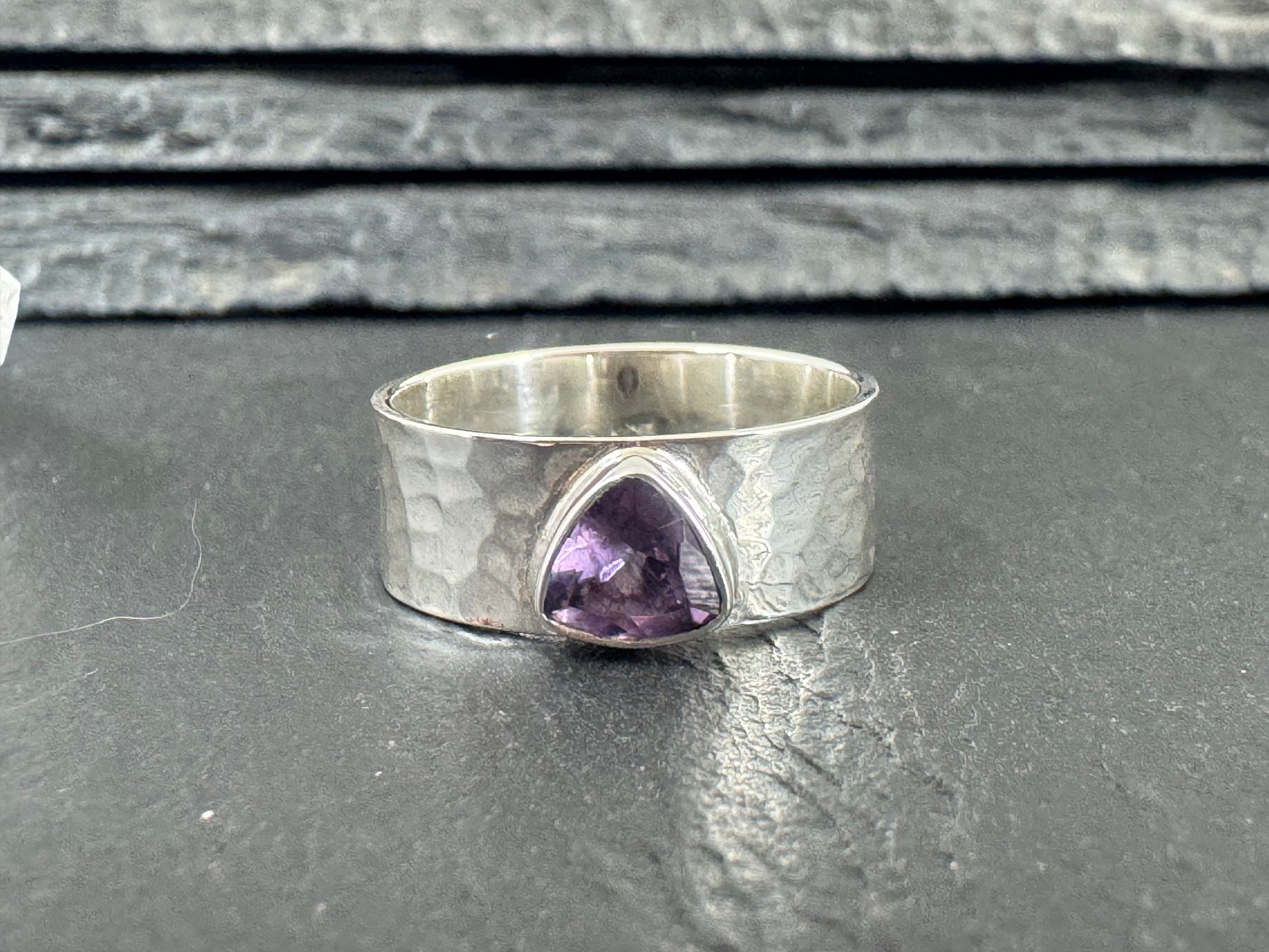 Sterling Silver ring with hammed band