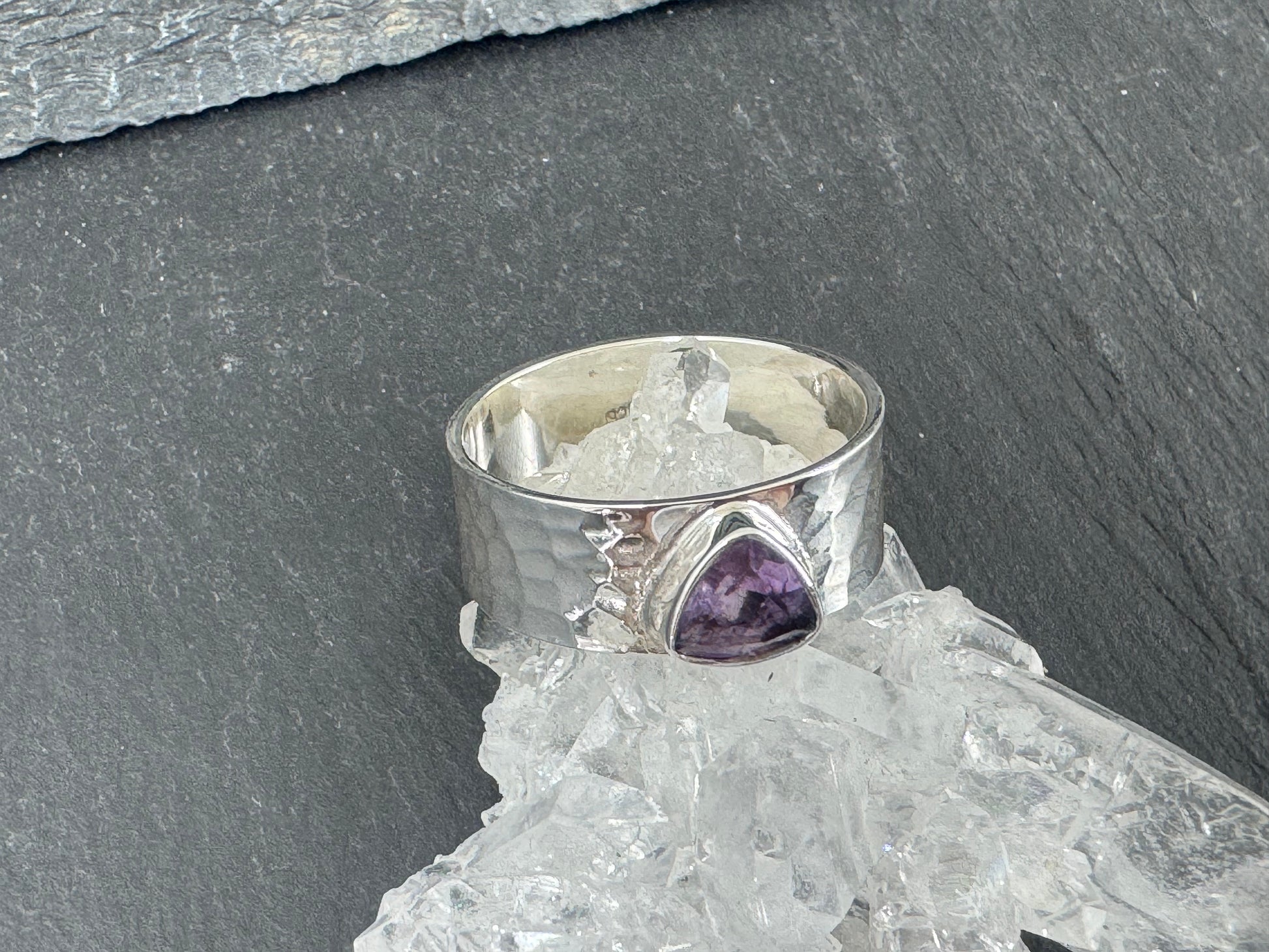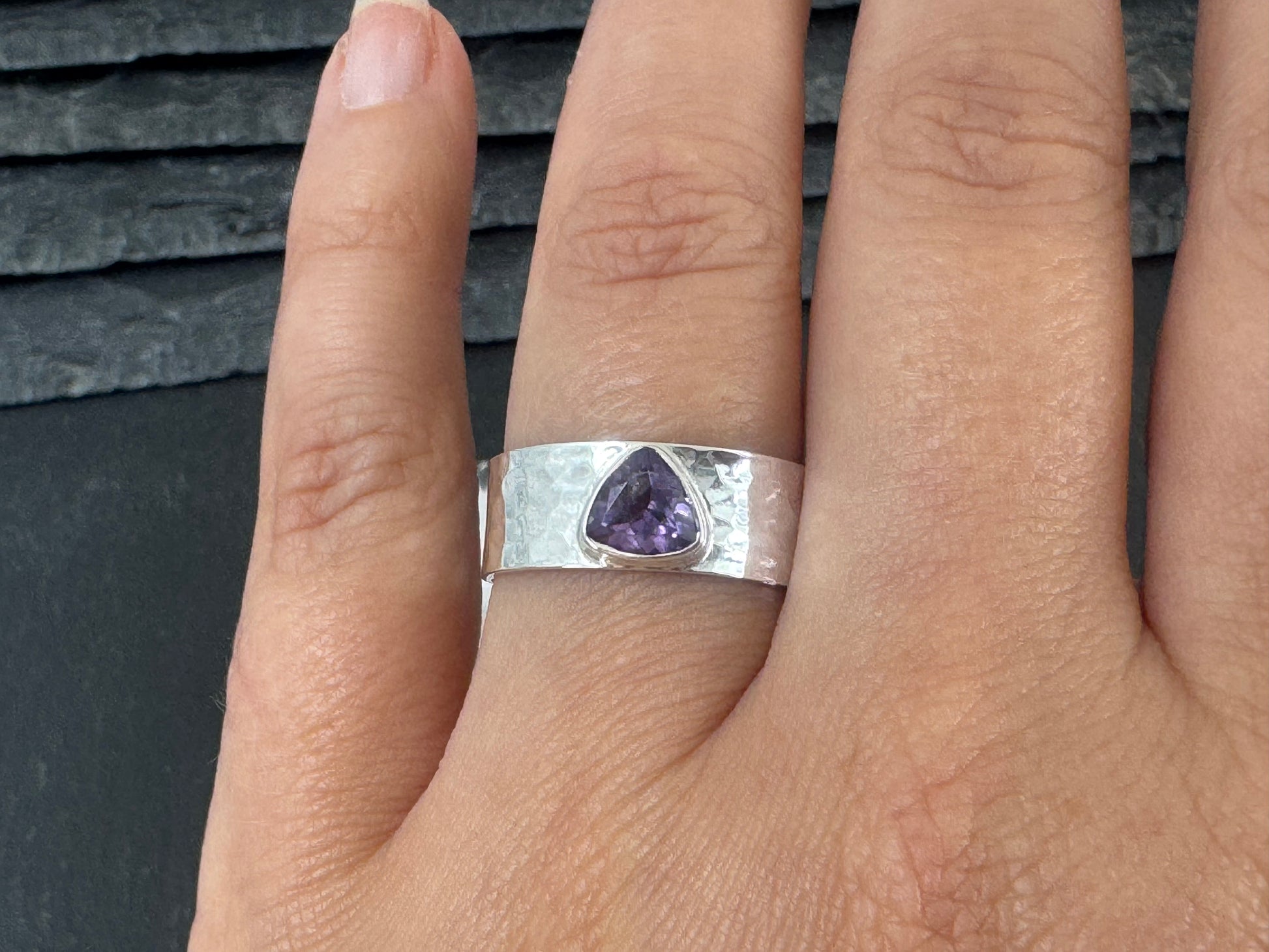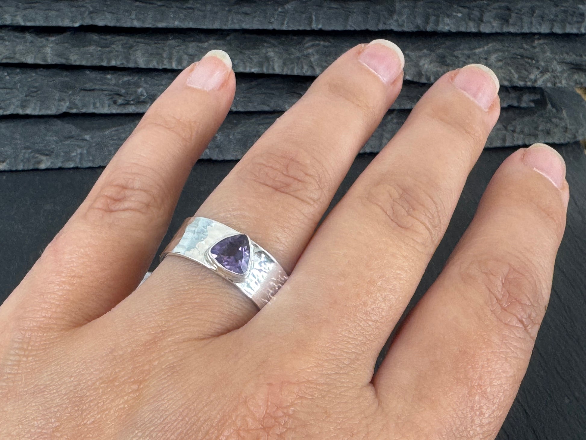 Amethyst Sterling Silver Ring - Wide Band Sterling Silver