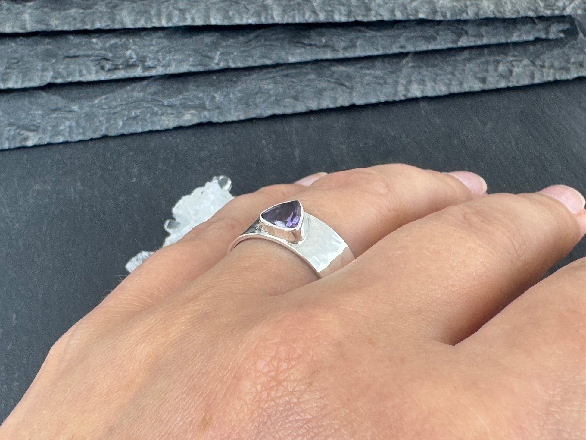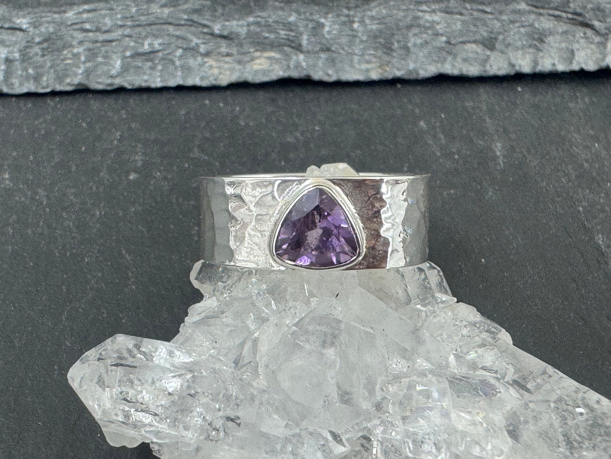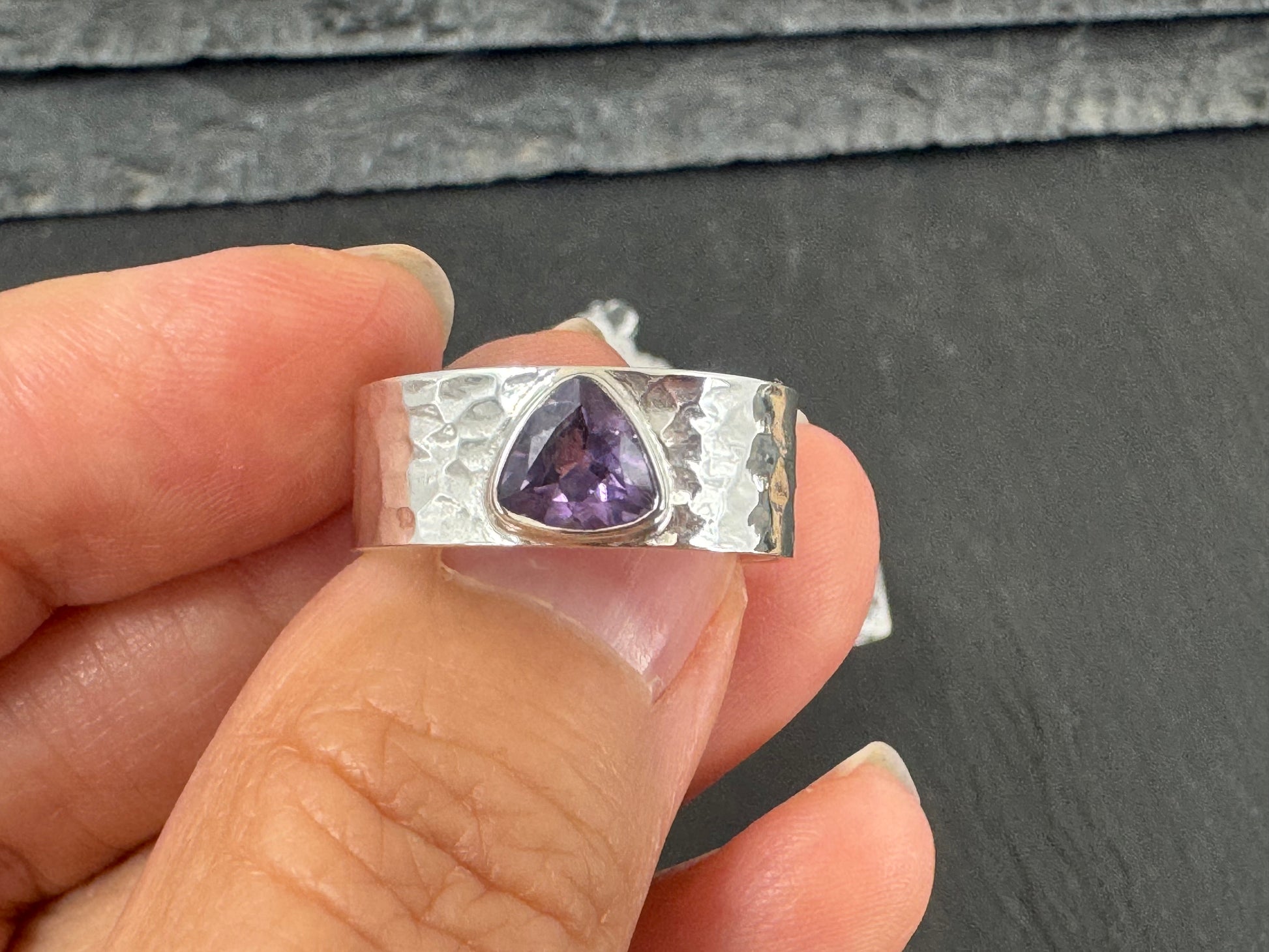 Amethyst Sterling Silver Ring - Wide Band Sterling Silver