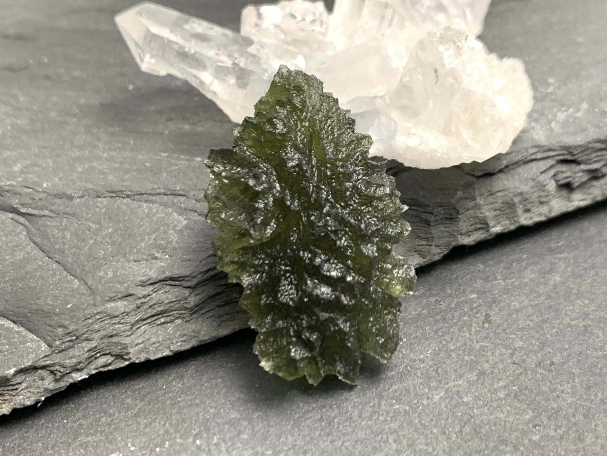 All of our Moldavite is 100% guaranteed authentic! We have been buying Moldavite directly from the source since 2013. Besednice is the spiky hedgehogs shaped Moldavite.