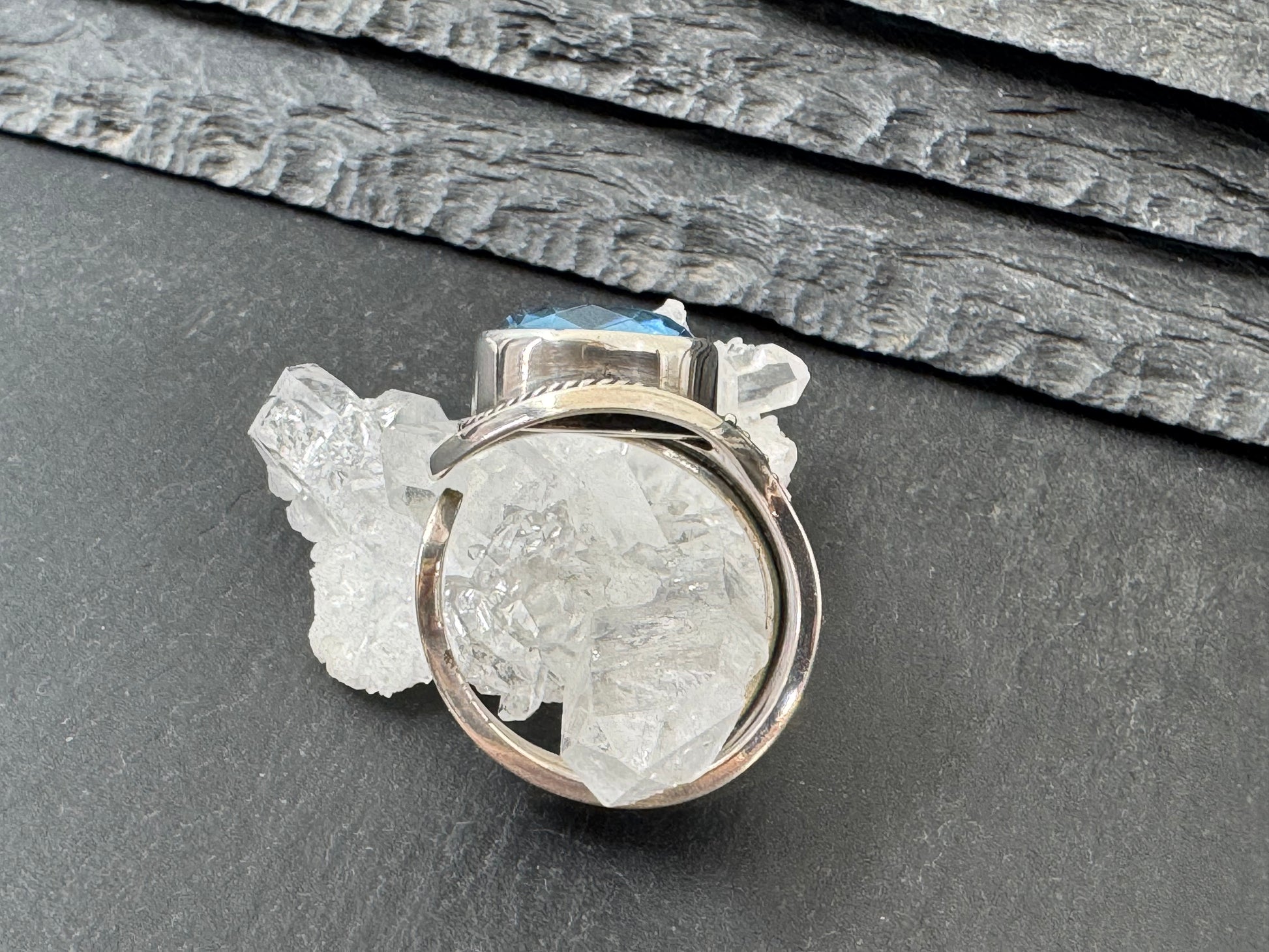 Blue Topaz 12mm Open Band Sterling Silver Ring