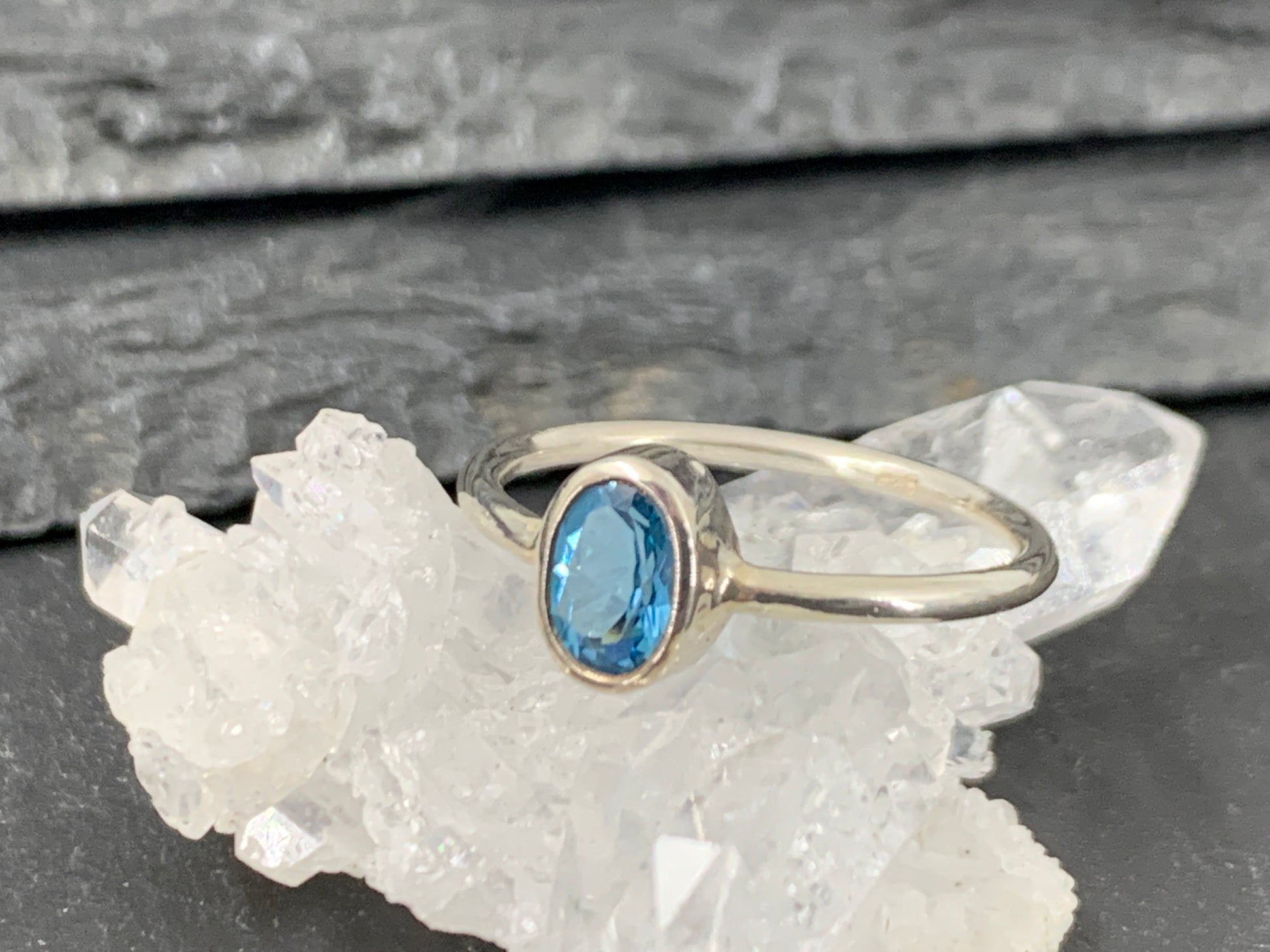 Blue Topaz 4x6mm Simple Sterling Silver Ring