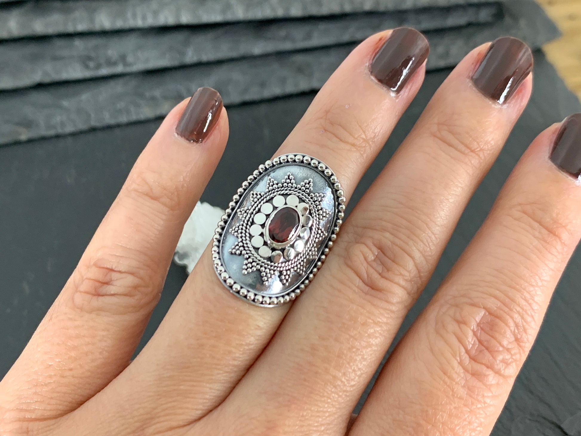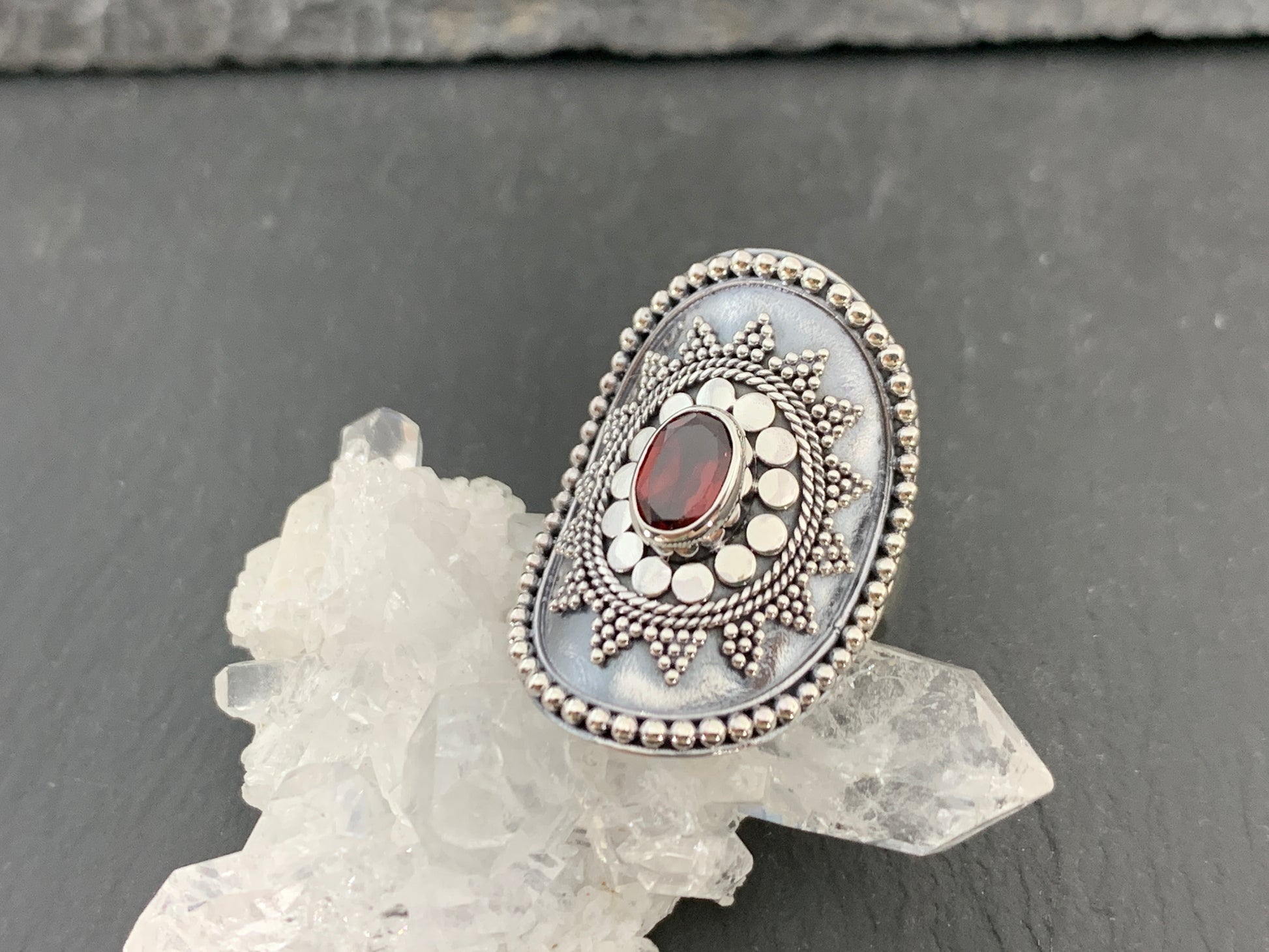 Boho Garnet Ring, Sterling Silver Statement Ring, Vintage Style Filigree Jewelry, Red Gemstone (Copy)