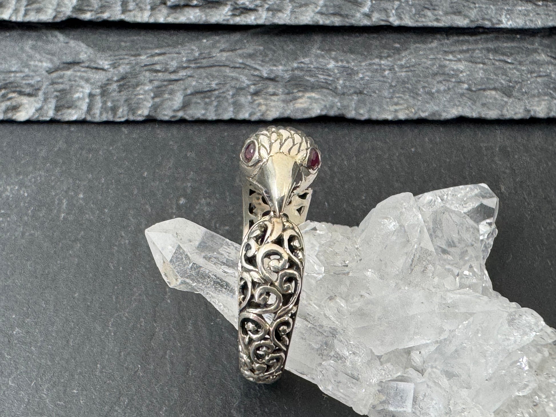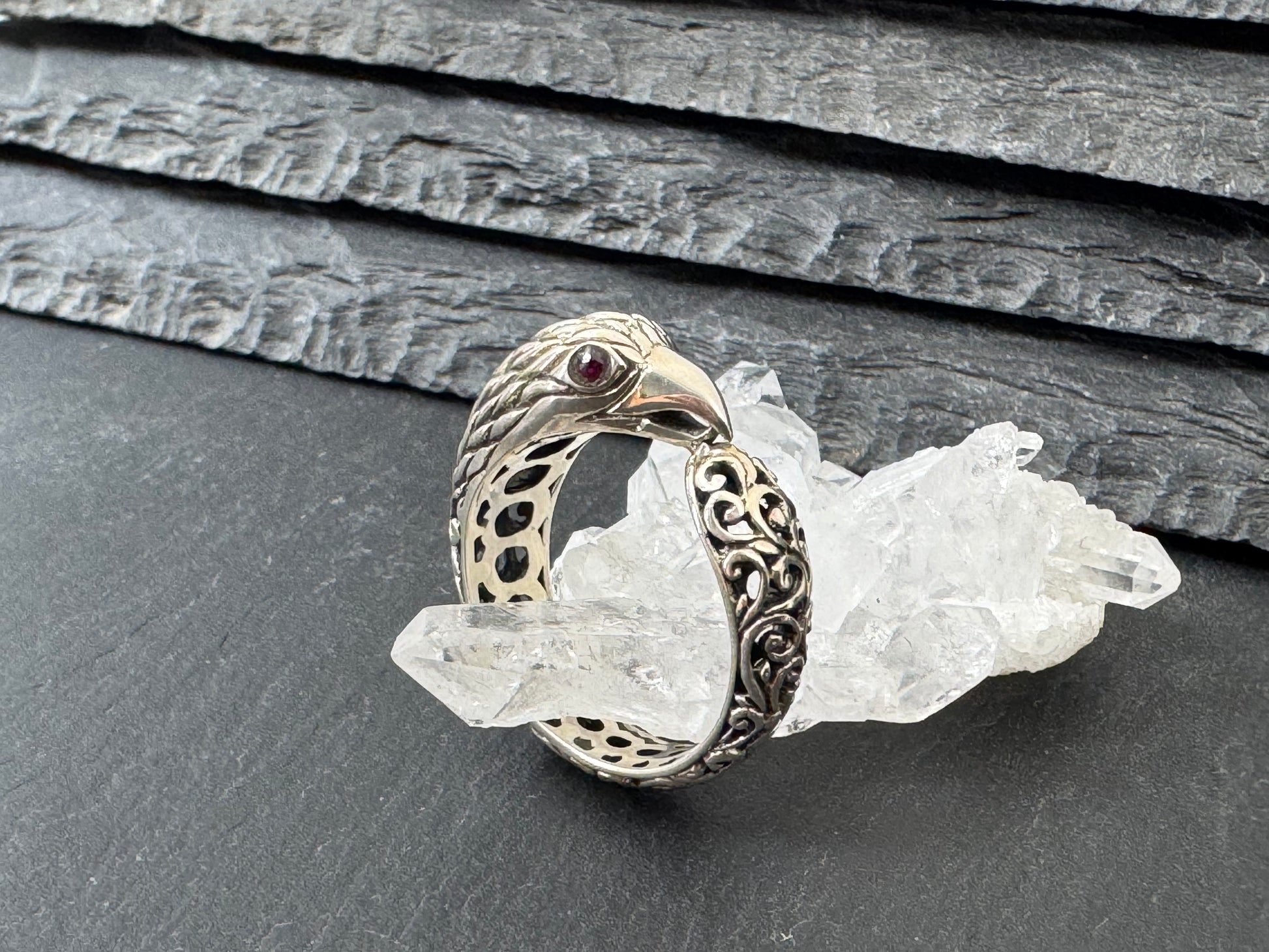 "Eagle with Garnet Eyes" Sterling Ring size 7.5US