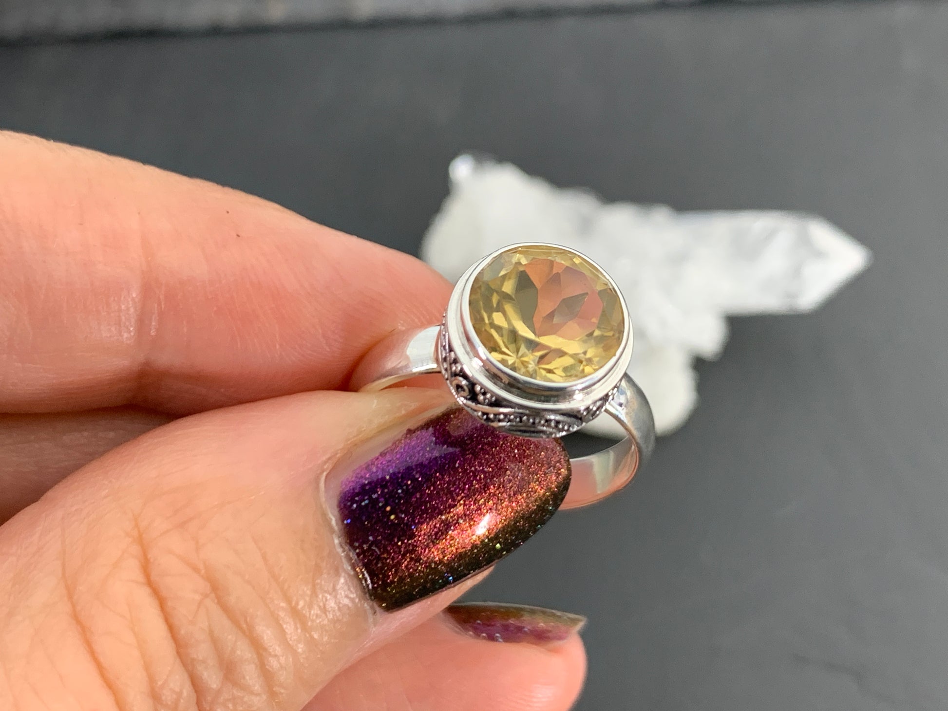 Citrine Ring Sterling Silver | Yellow Gemstone Solitaire Ring | November Birthstone Jewelry | Handmade Statement Ring