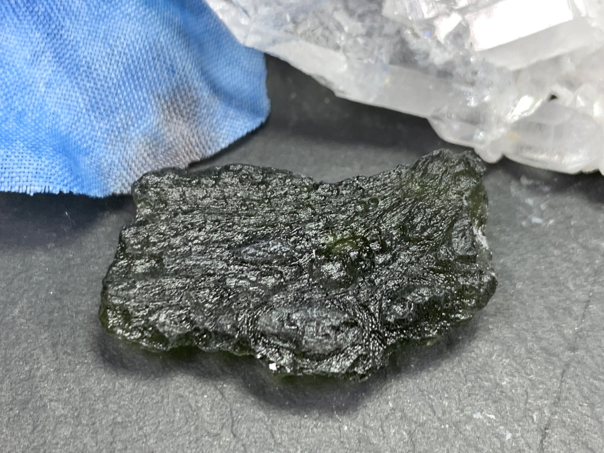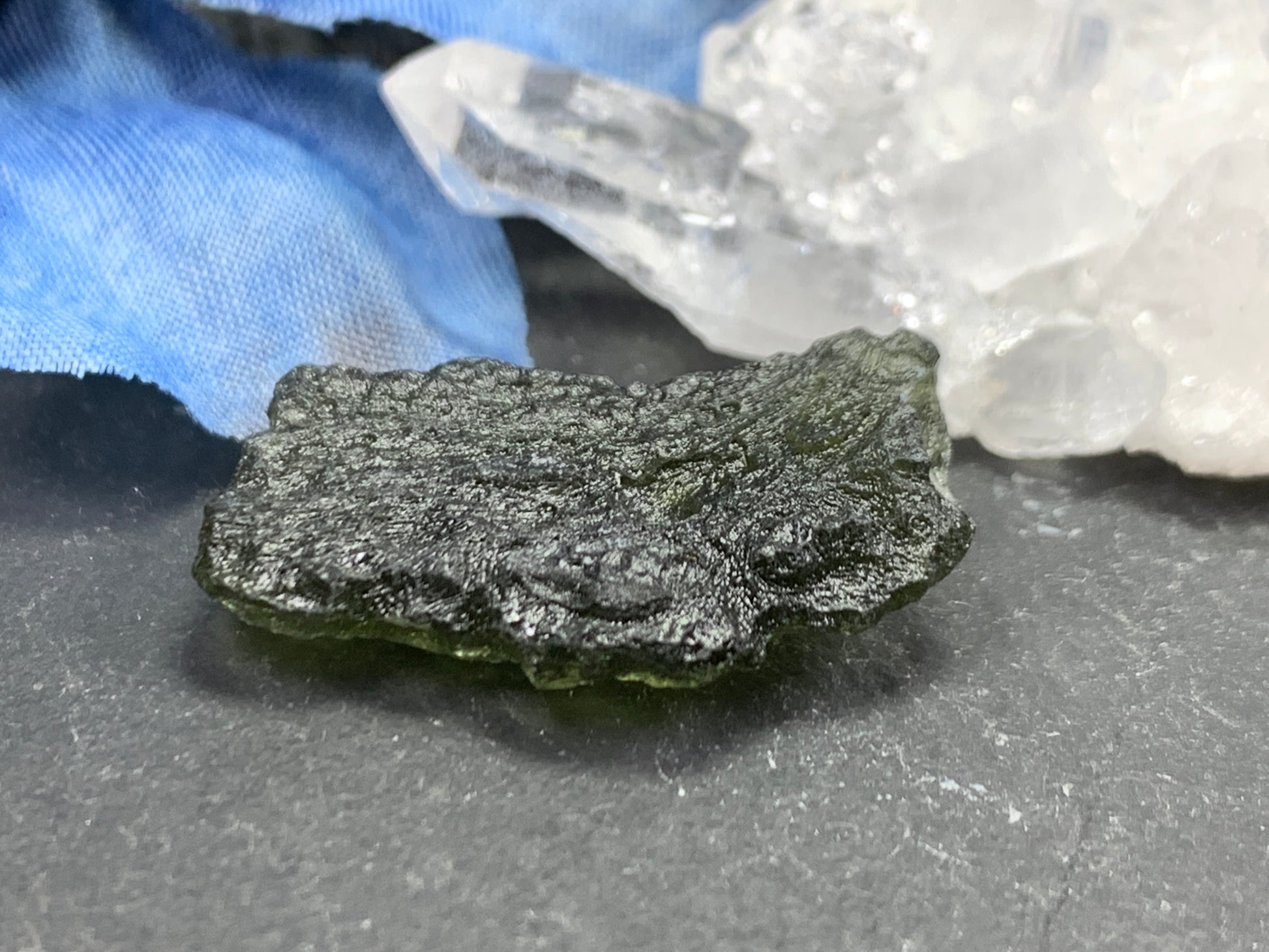 Moldavite is associated with the heart and third eye (brow) chakras, as well as the crown chakra. Moldavite in any form increases the depth and clarity of inner journeys.