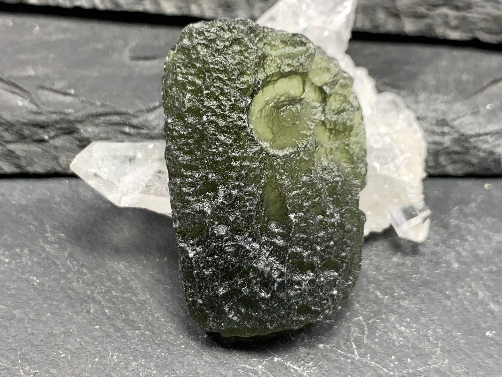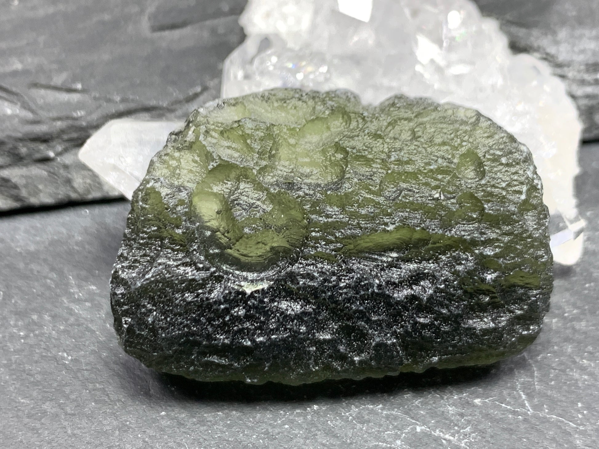 Moldavite has biggest influence on the heart chakra and third eye (brow) chakras, as well as the crown chakra. Moldavite in any form increases the depth and clarity of inner journeys, increase energy, suppresses our ego, and cleanses our body and soul. It is a popular stone used to reduces headaches, fatigue and drowsiness, while also strengthening the immune system, and is often uses for meditation.