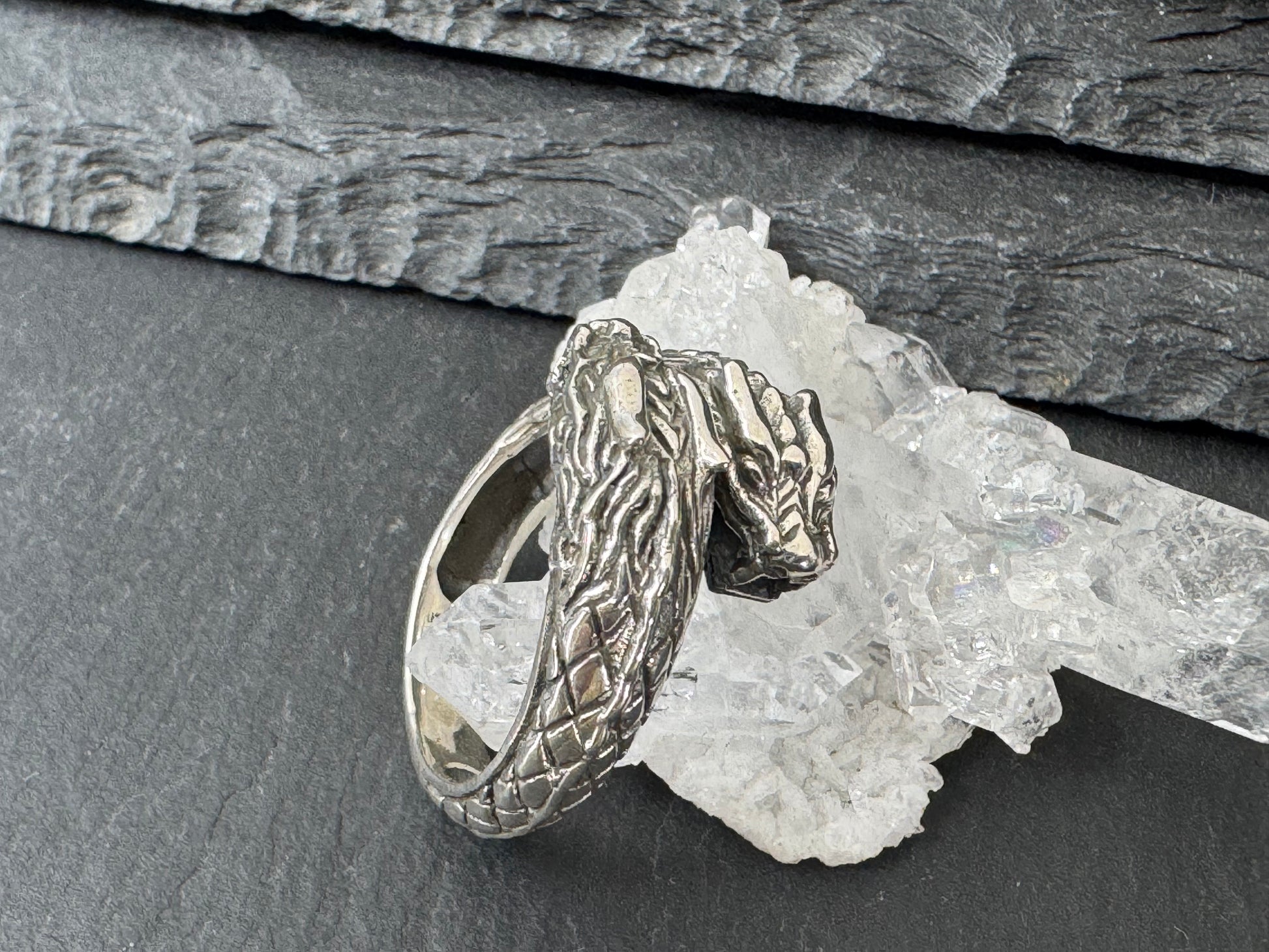 Bold meets mythical in this handcrafted sterling silver dragon ring — a fierce symbol of strength, protection, and timeless style.