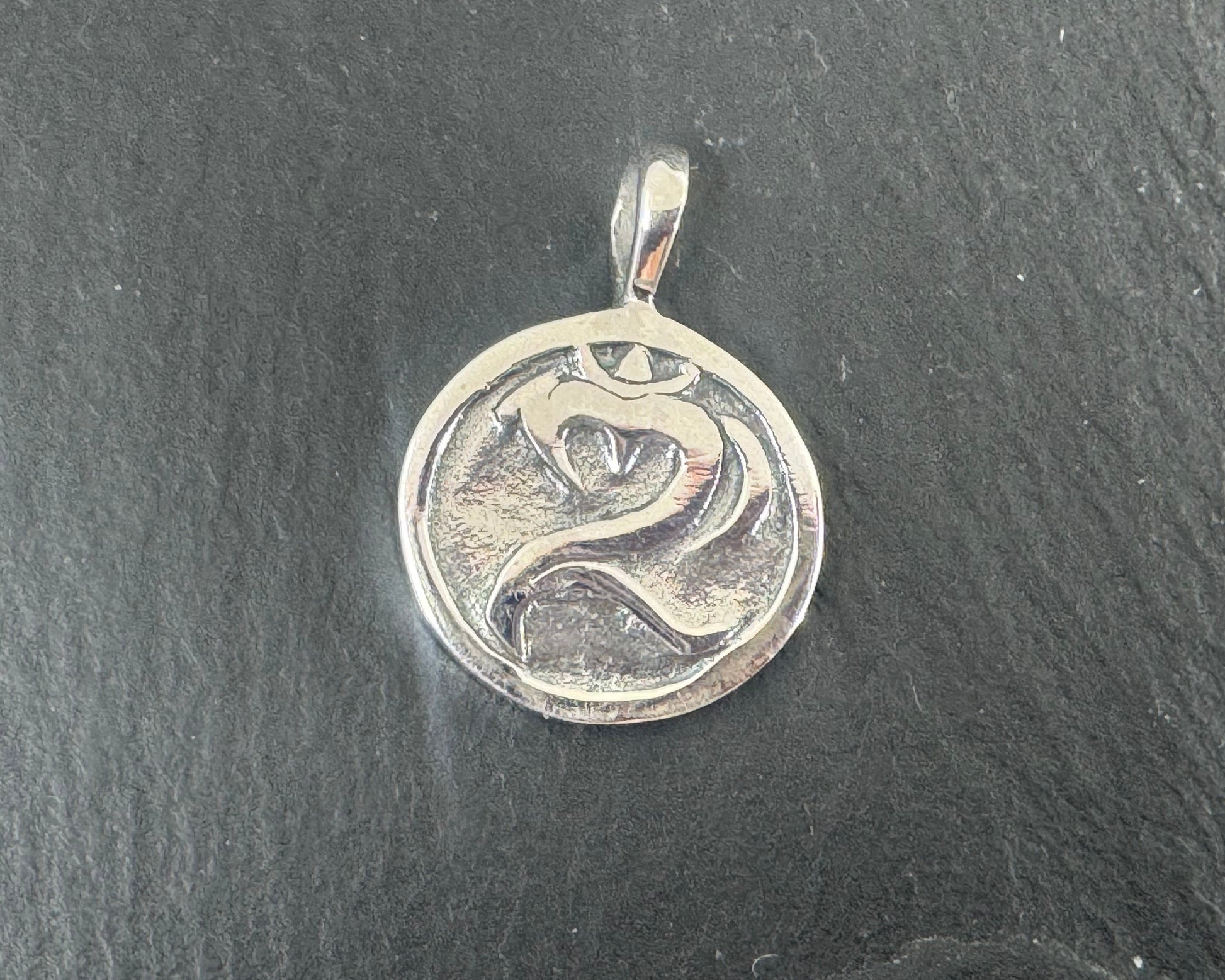 Measures: 21mm total length with eye for chain, 15mm round pendant