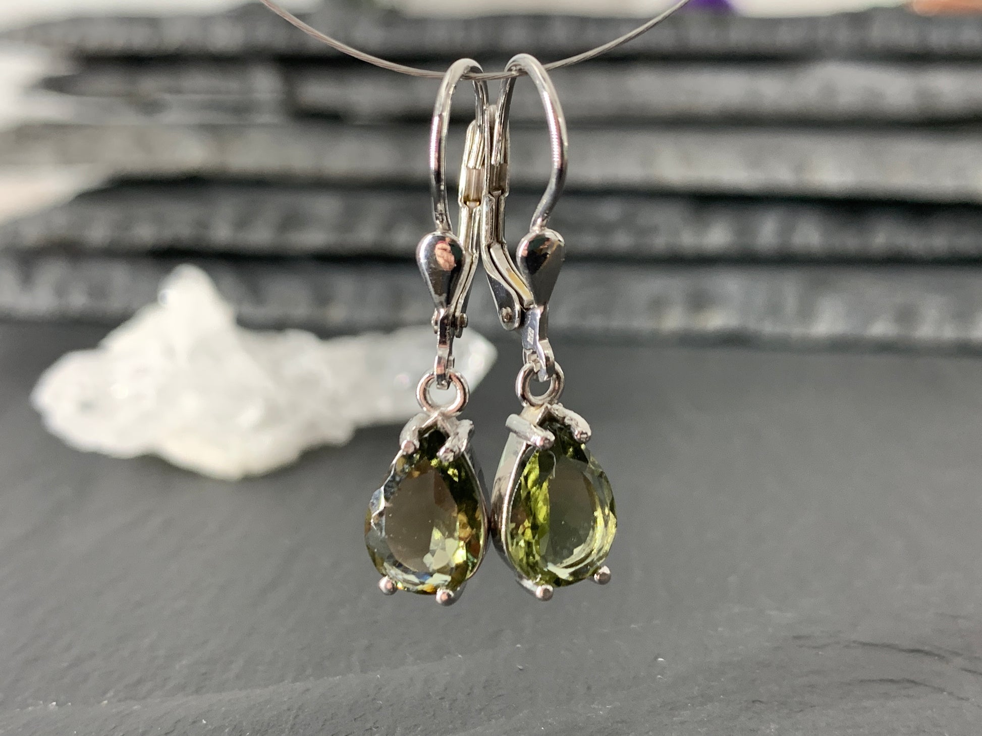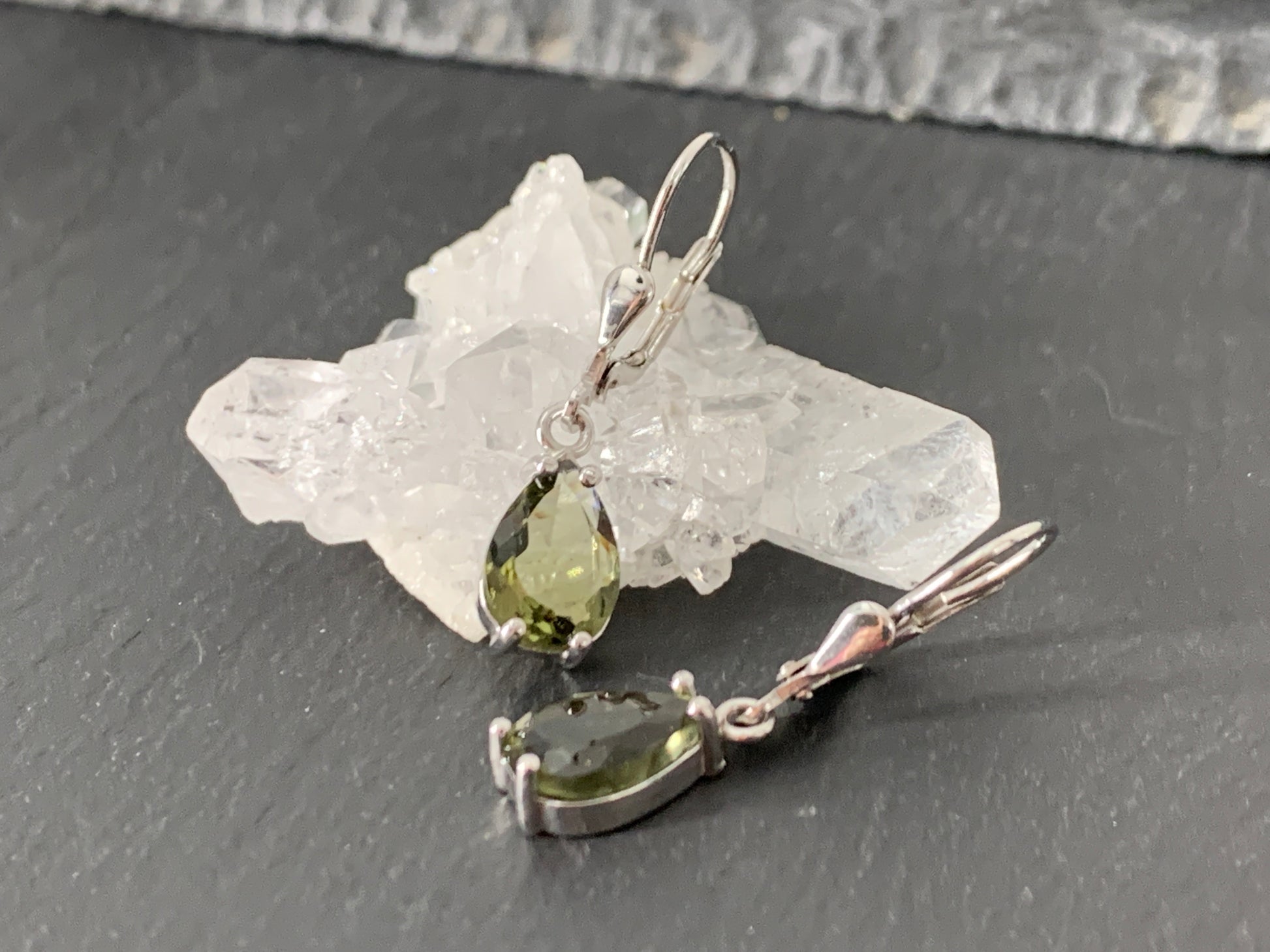 Dimensions: whole earrings are 29mm long/ Moldavite 7x10mm