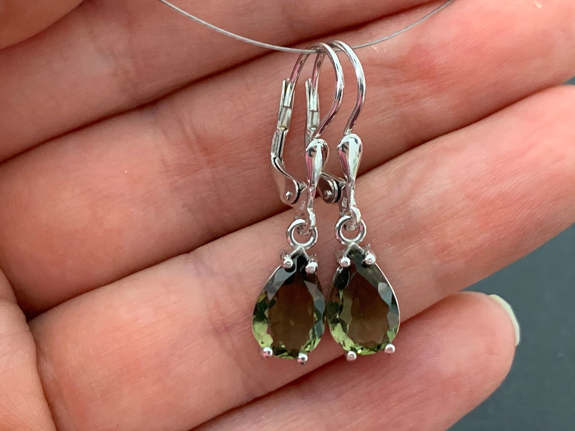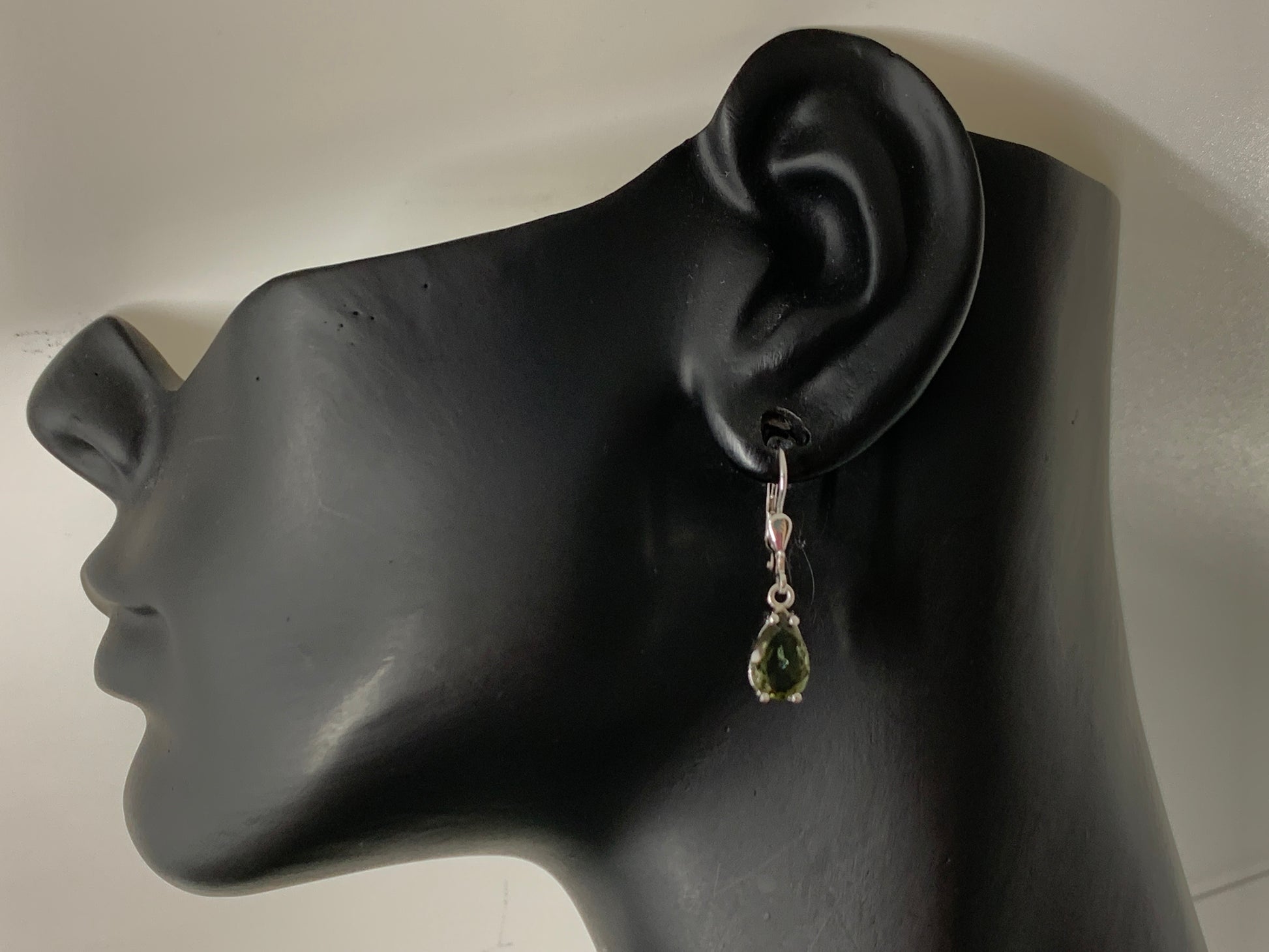 Pear shape faceted Moldavite Sterling silver earrings