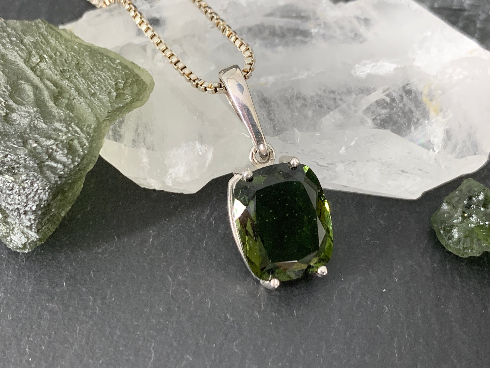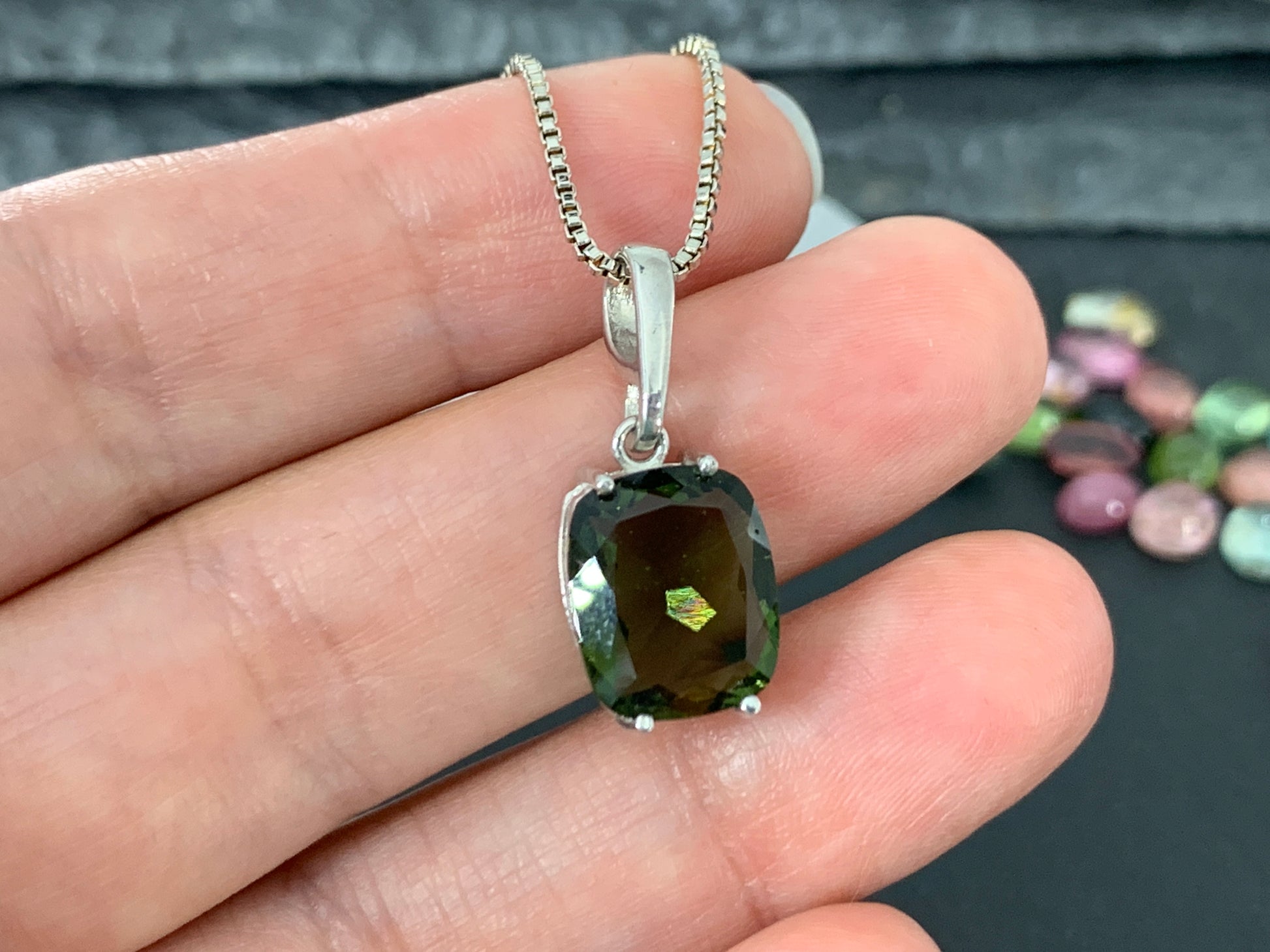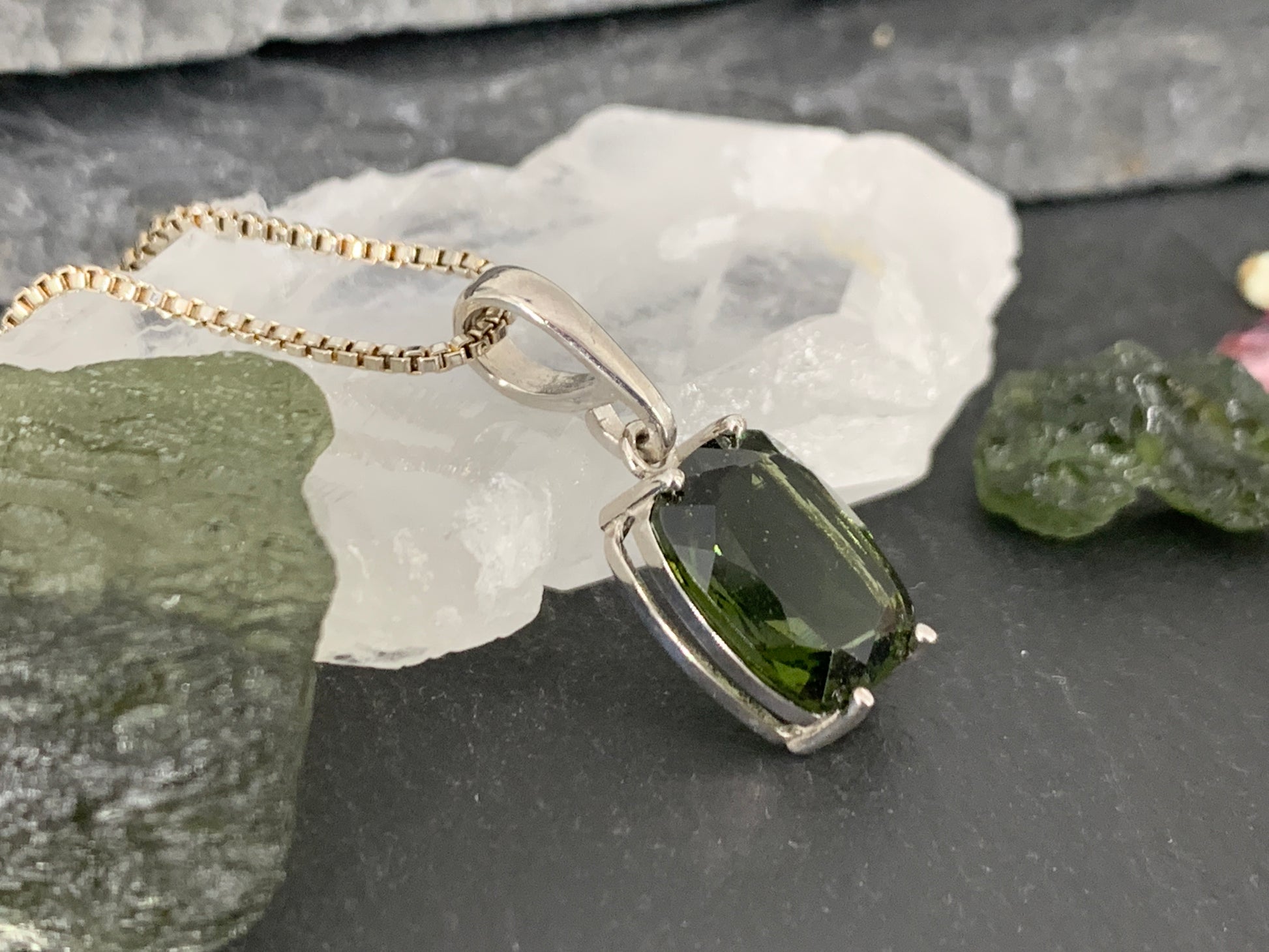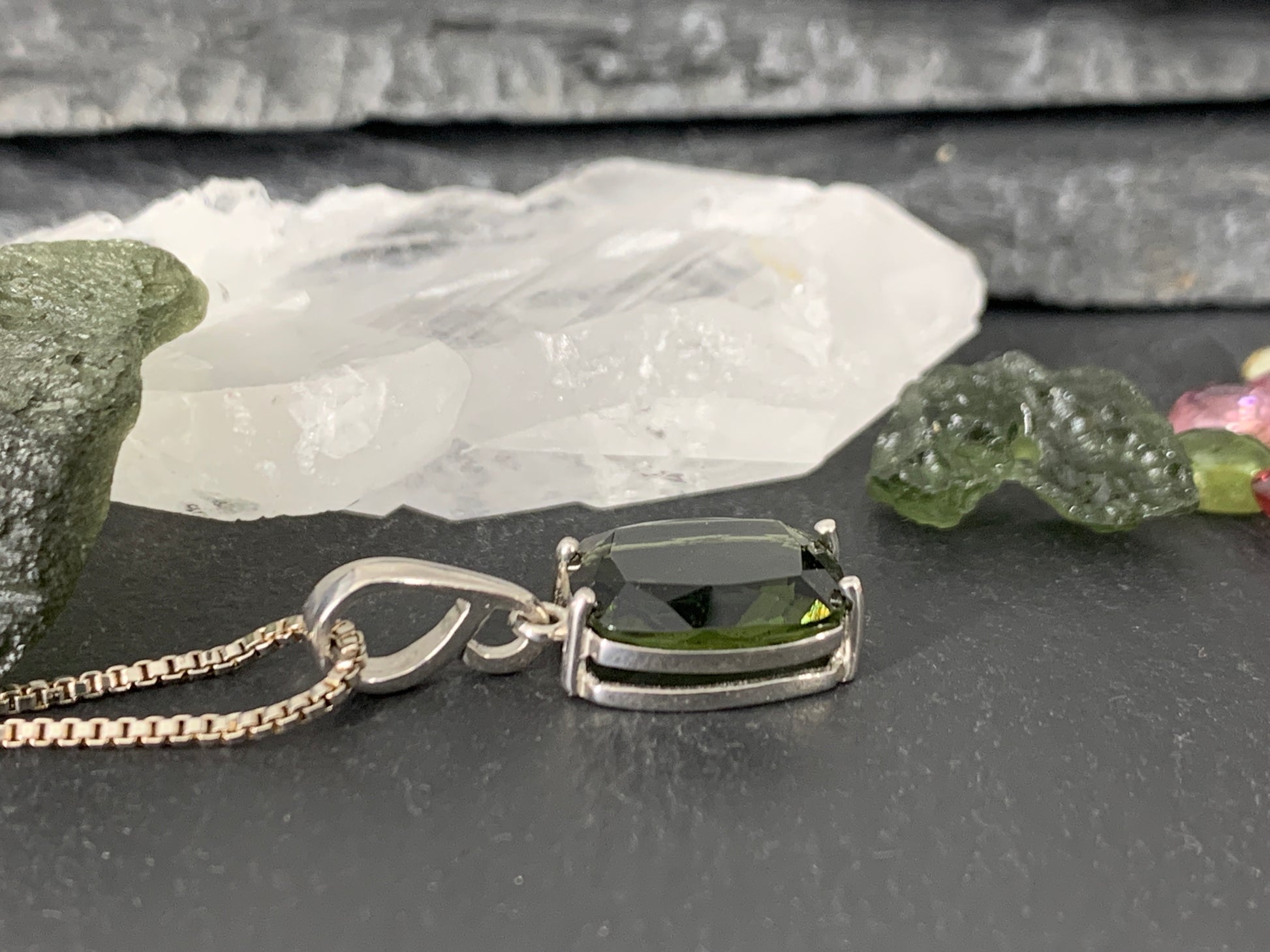 Rectangle shape Faceted Moldavite set in Sterling silver