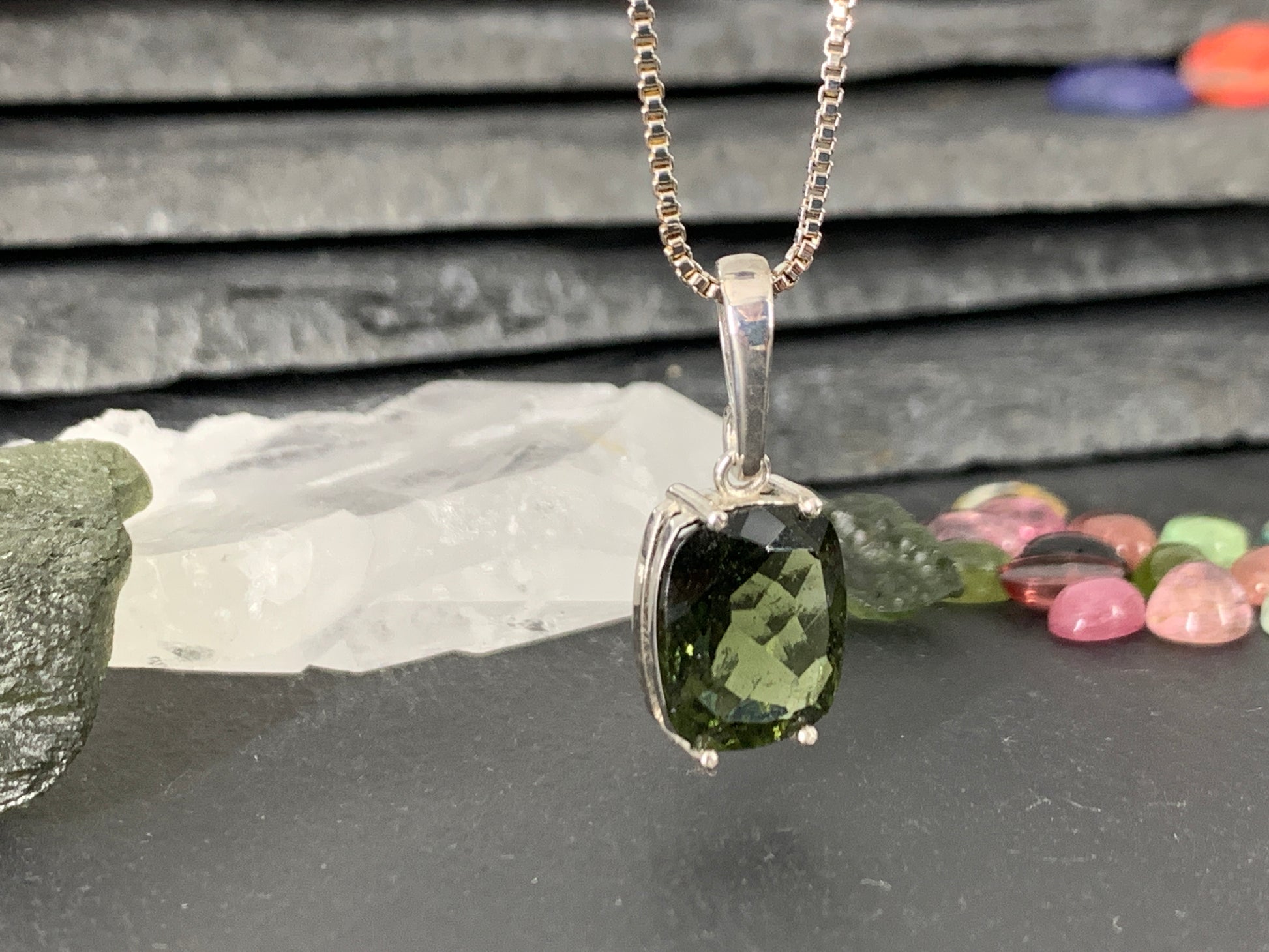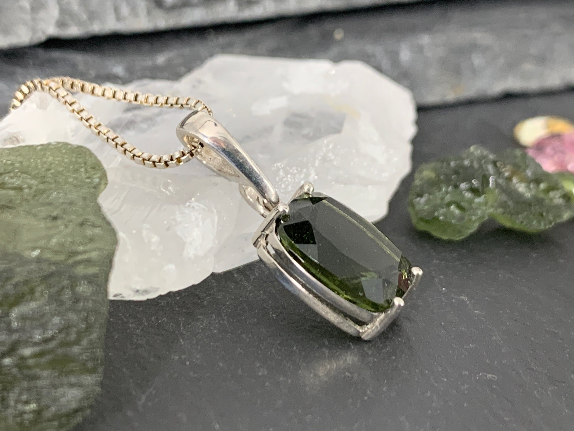 Faceted Moldavite Pendant - Rectangle Shape Pendant