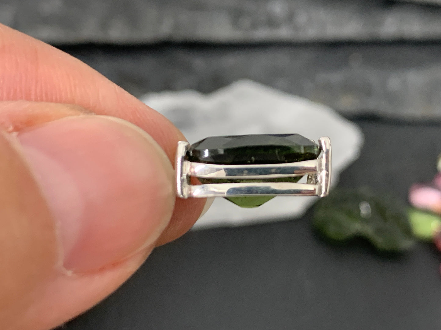 Rectangle shape Faceted Moldavite set in Sterling silver