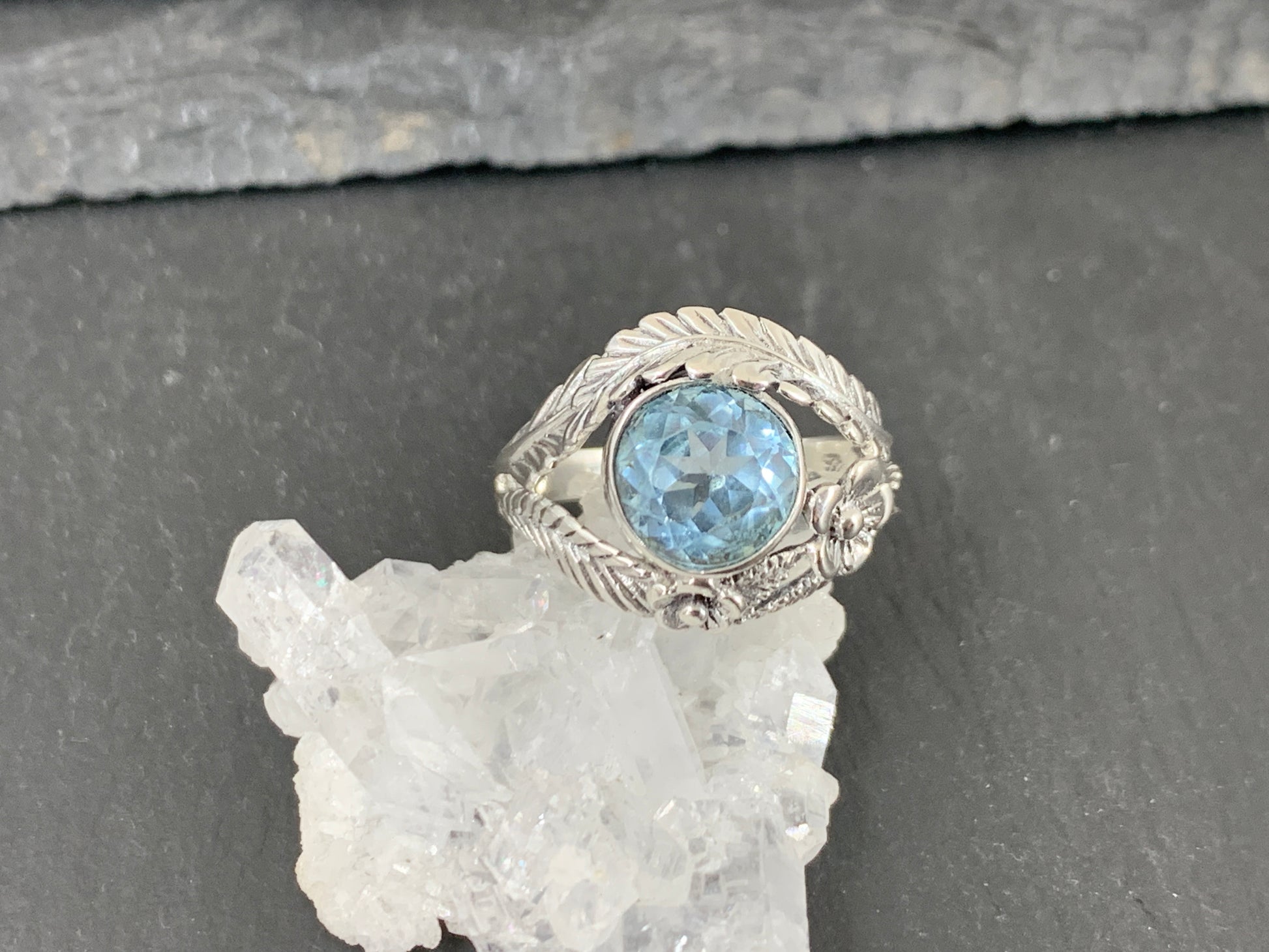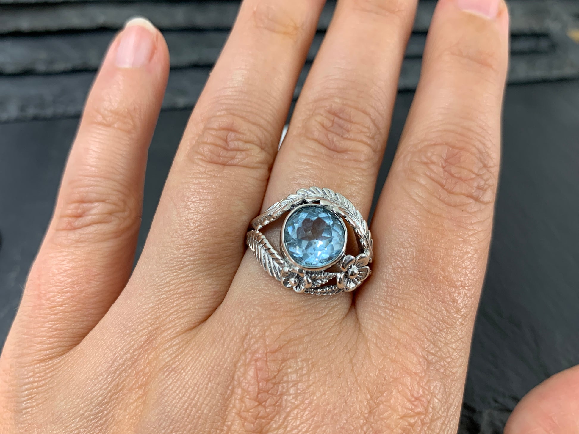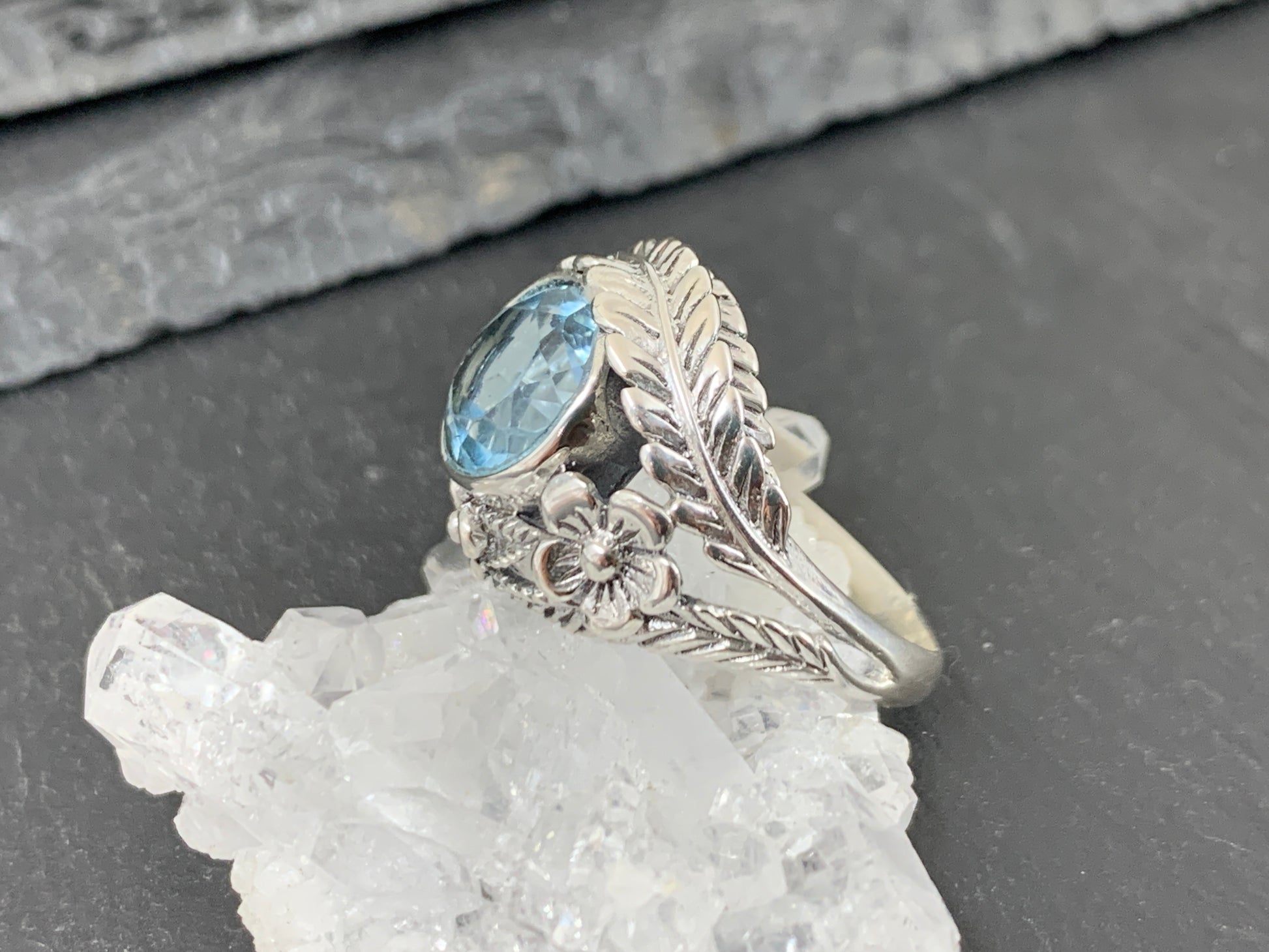Feathers, Flowers & Topaz Sterling Silver Ring