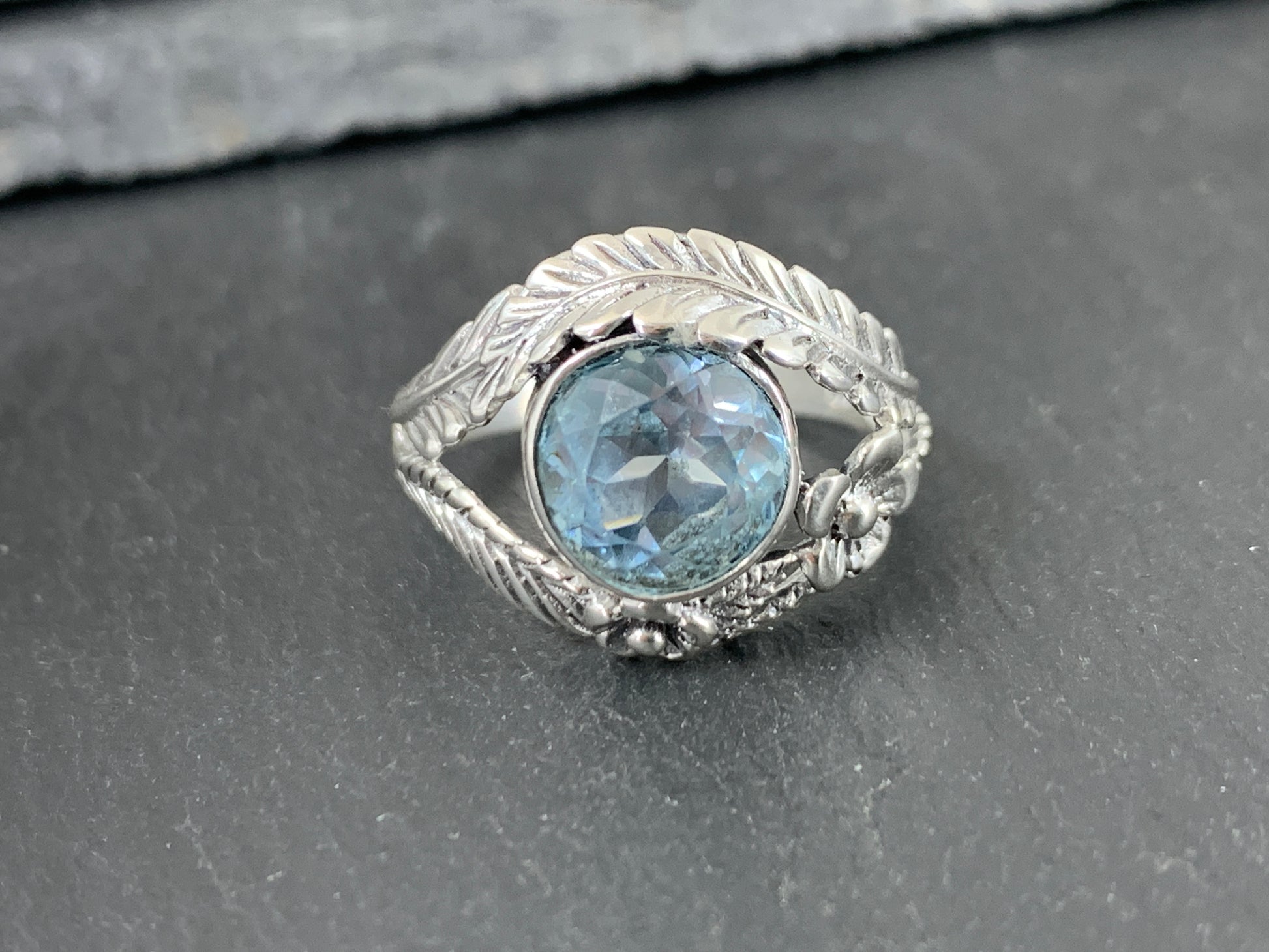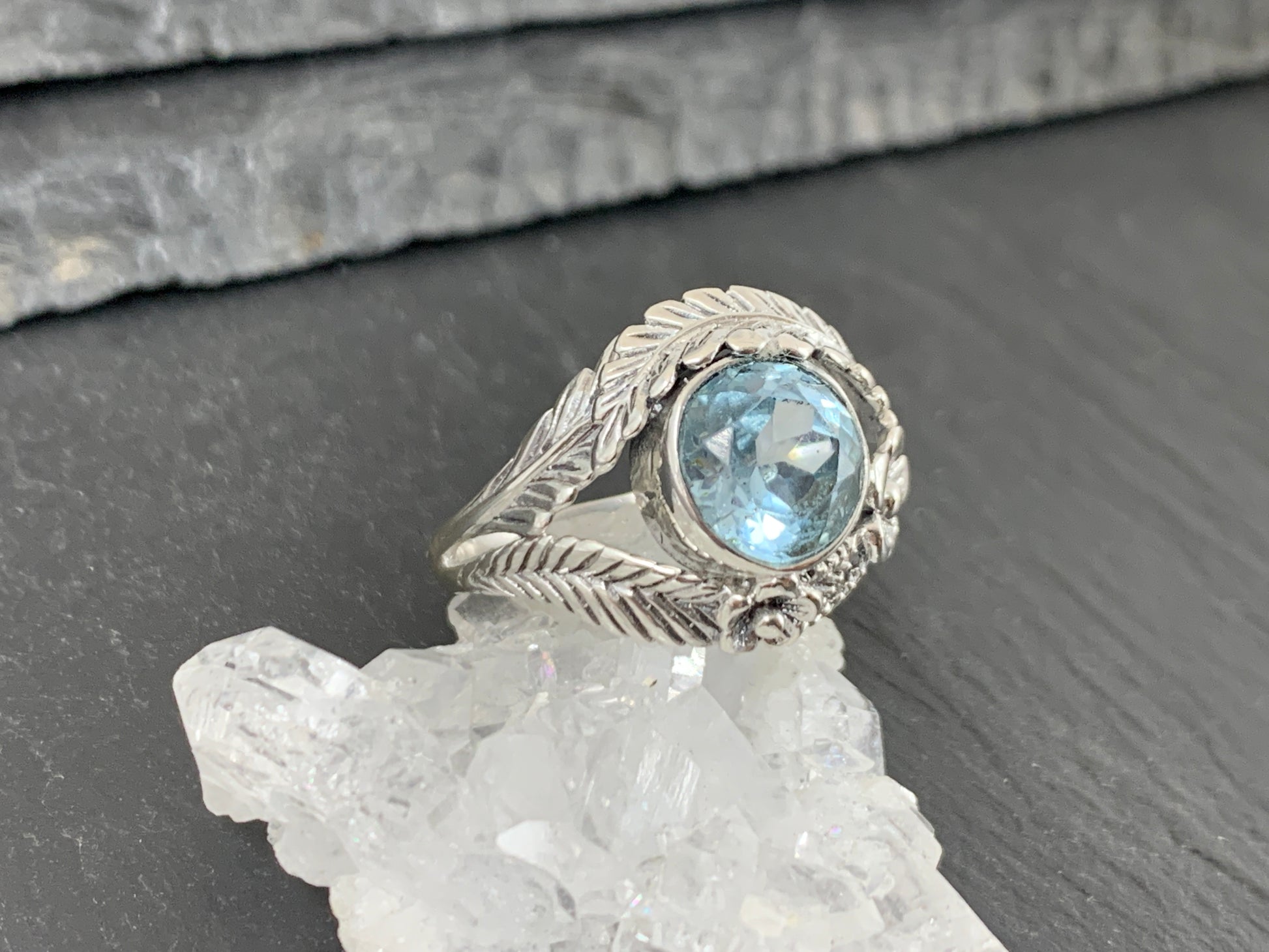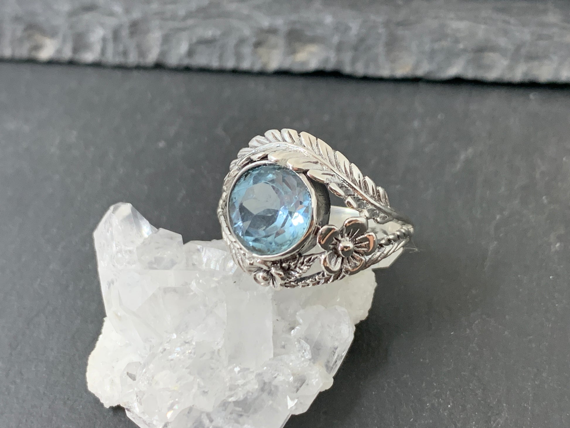 Feathers, Flowers & Topaz Sterling Silver Ring