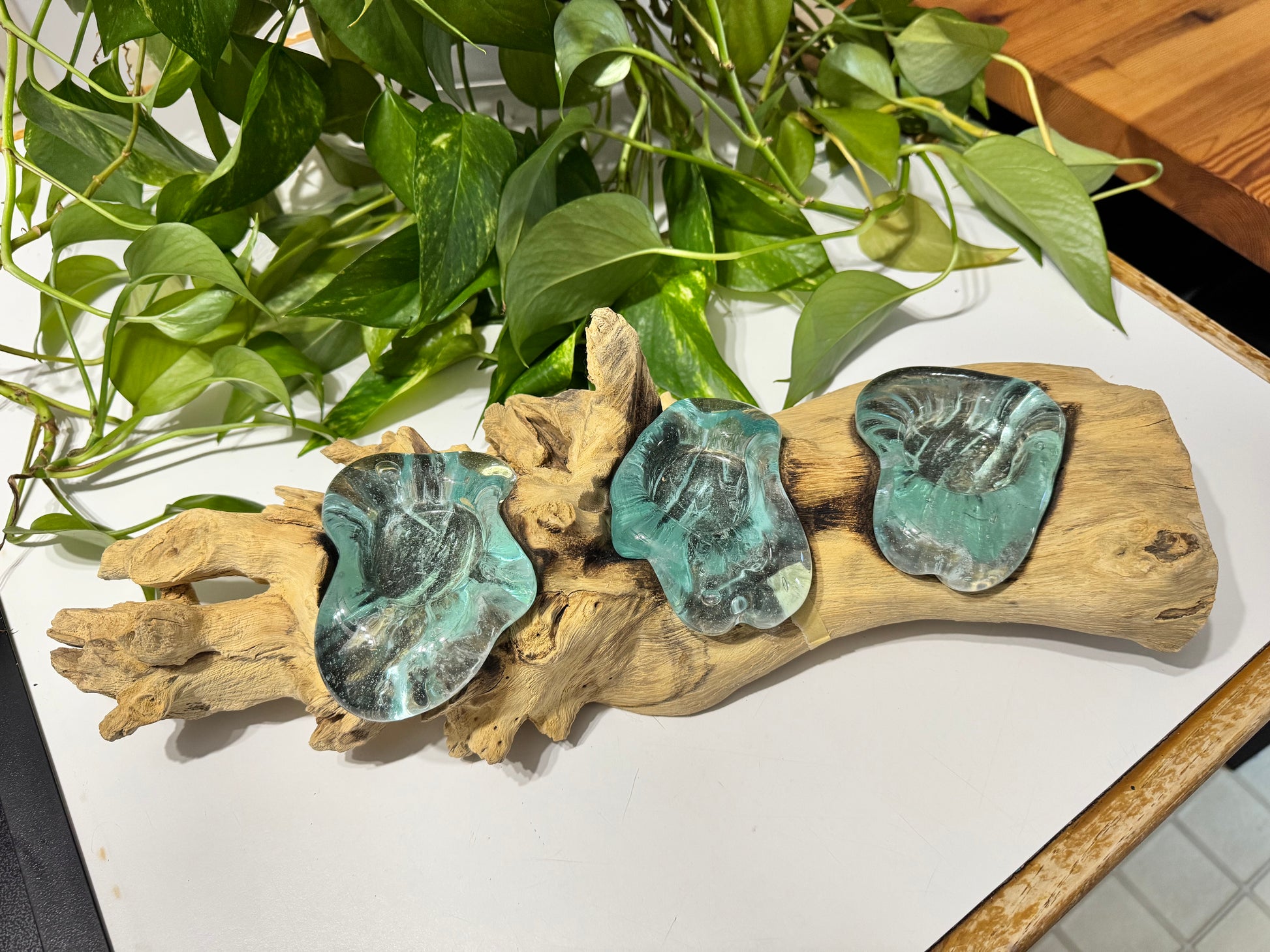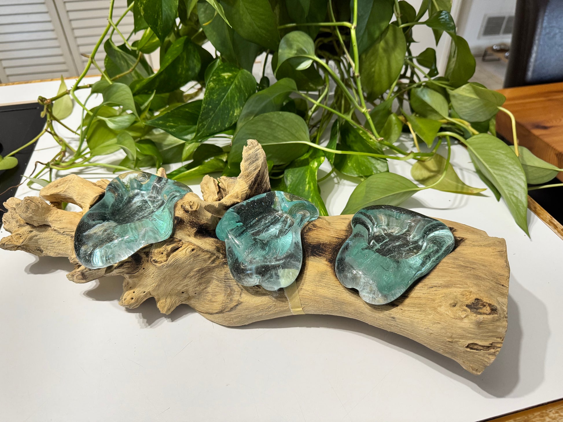 Materials: natural driftwood, hand-formed glass