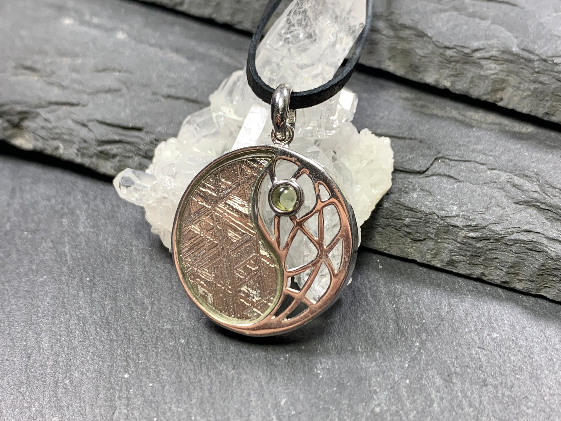 Jing Jang Moldavite & Muonionalusta Meteorite pendant