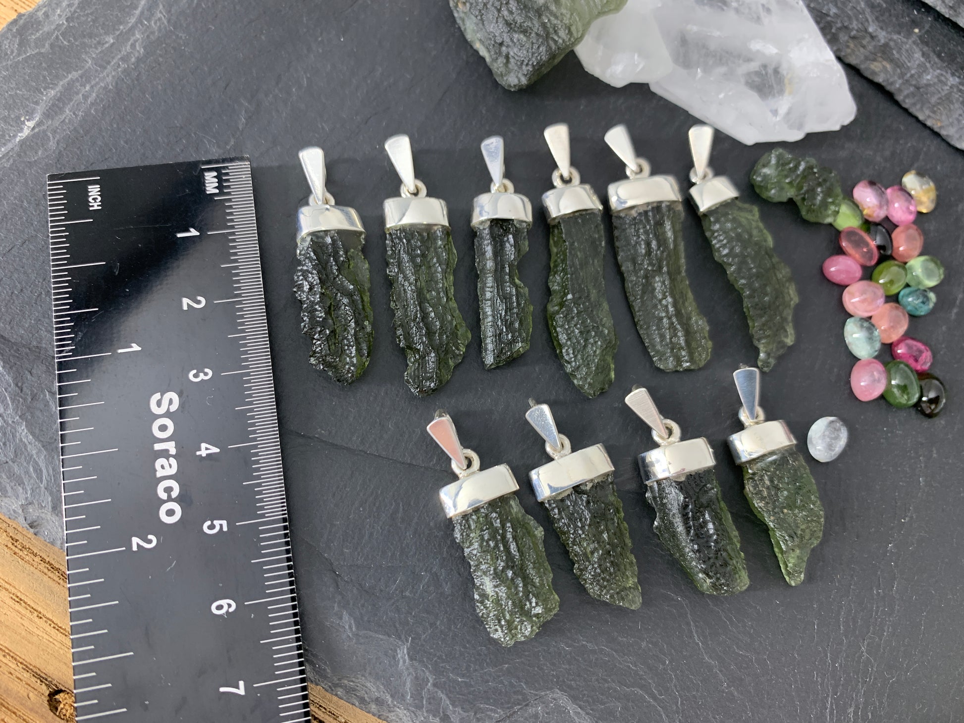 Beautiful simple rough Moldavite pendant with Sterling Silver .925