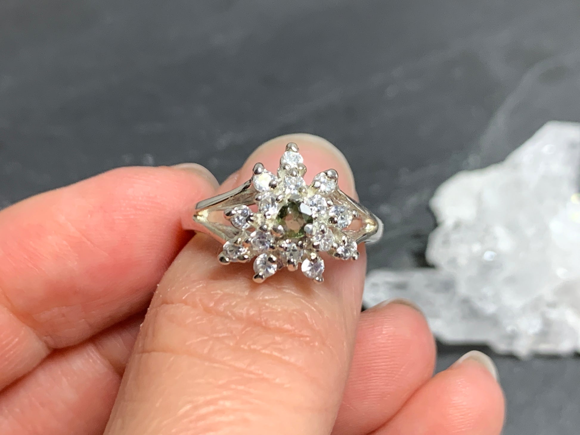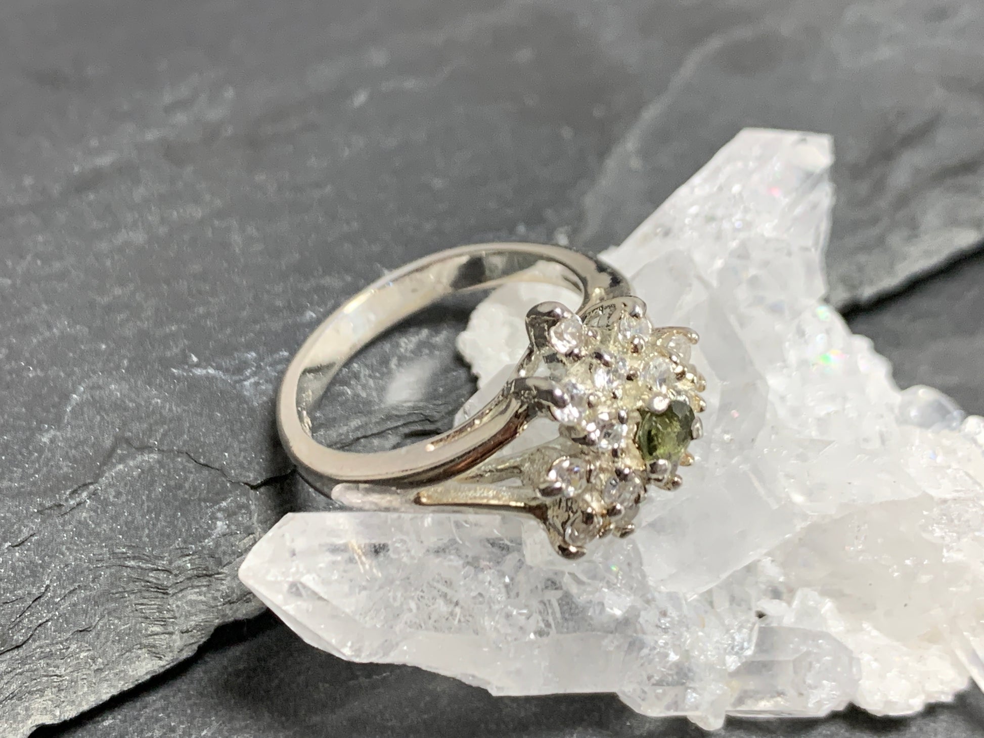 Faceted 5.5mm Moldavite set in Sterling Silver