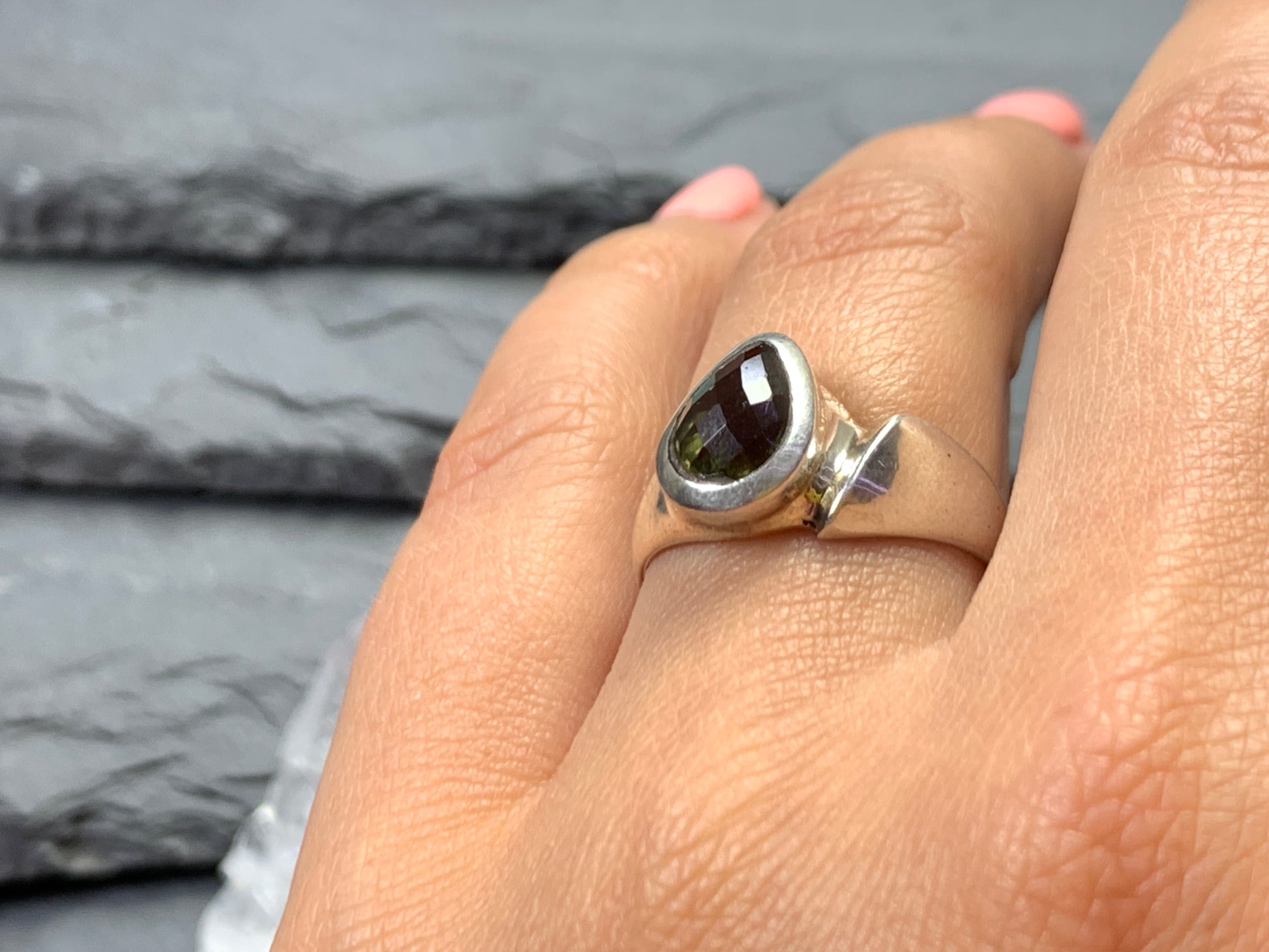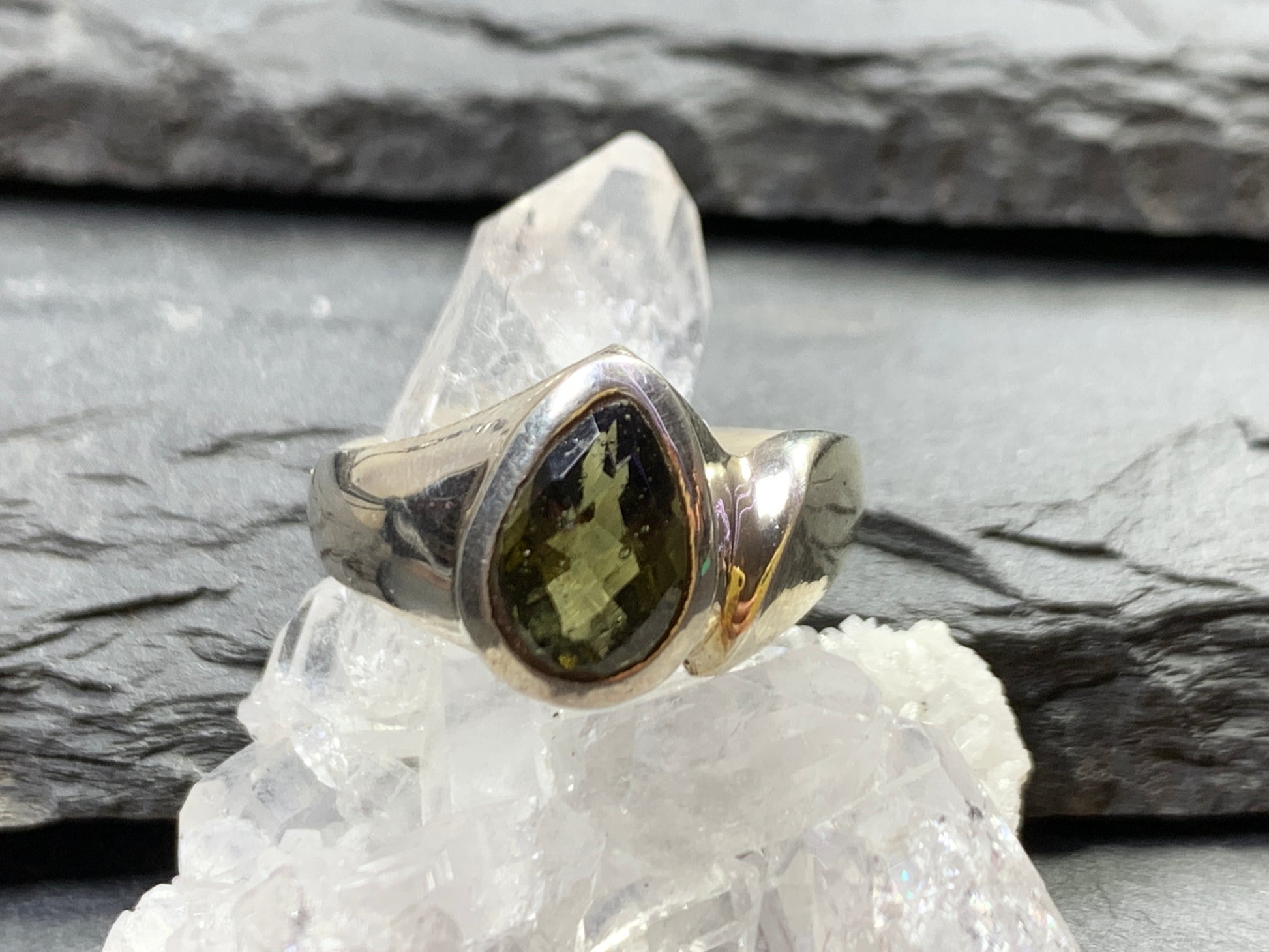 Ring with Moldavite/ 6.75 US