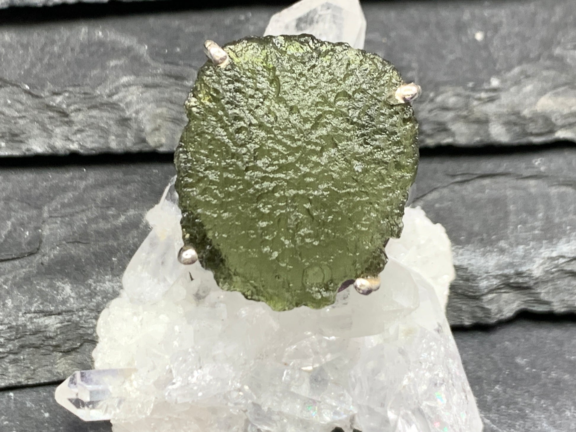 Moldavite has biggest influence on the heart chakra and third eye (brow) chakras, as well as the crown chakra. Moldavite in any form increases the depth and clarity of inner journeys, increase energy, suppresses our ego, and cleanses our body and soul. It is a popular stone used to reduces headaches, fatigue and drowsiness, while also strengthening the immune system, and is often uses for meditation.