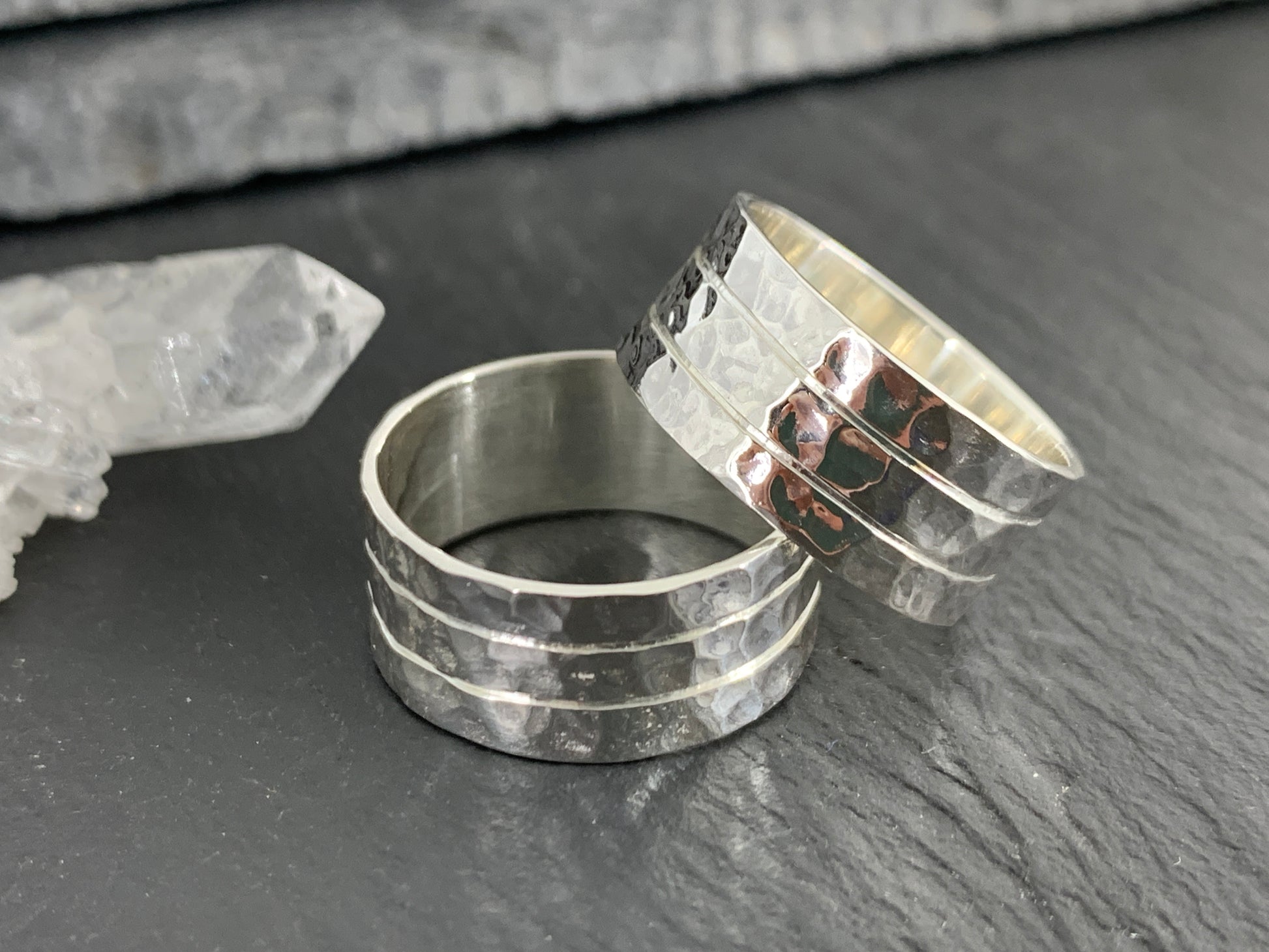 Hammered Sterling Silver Ring – Wide Textured Band, Rustic Men's Wedding Ring, Unisex Silver Statement Ring, Handmade Minimalist Jewelry