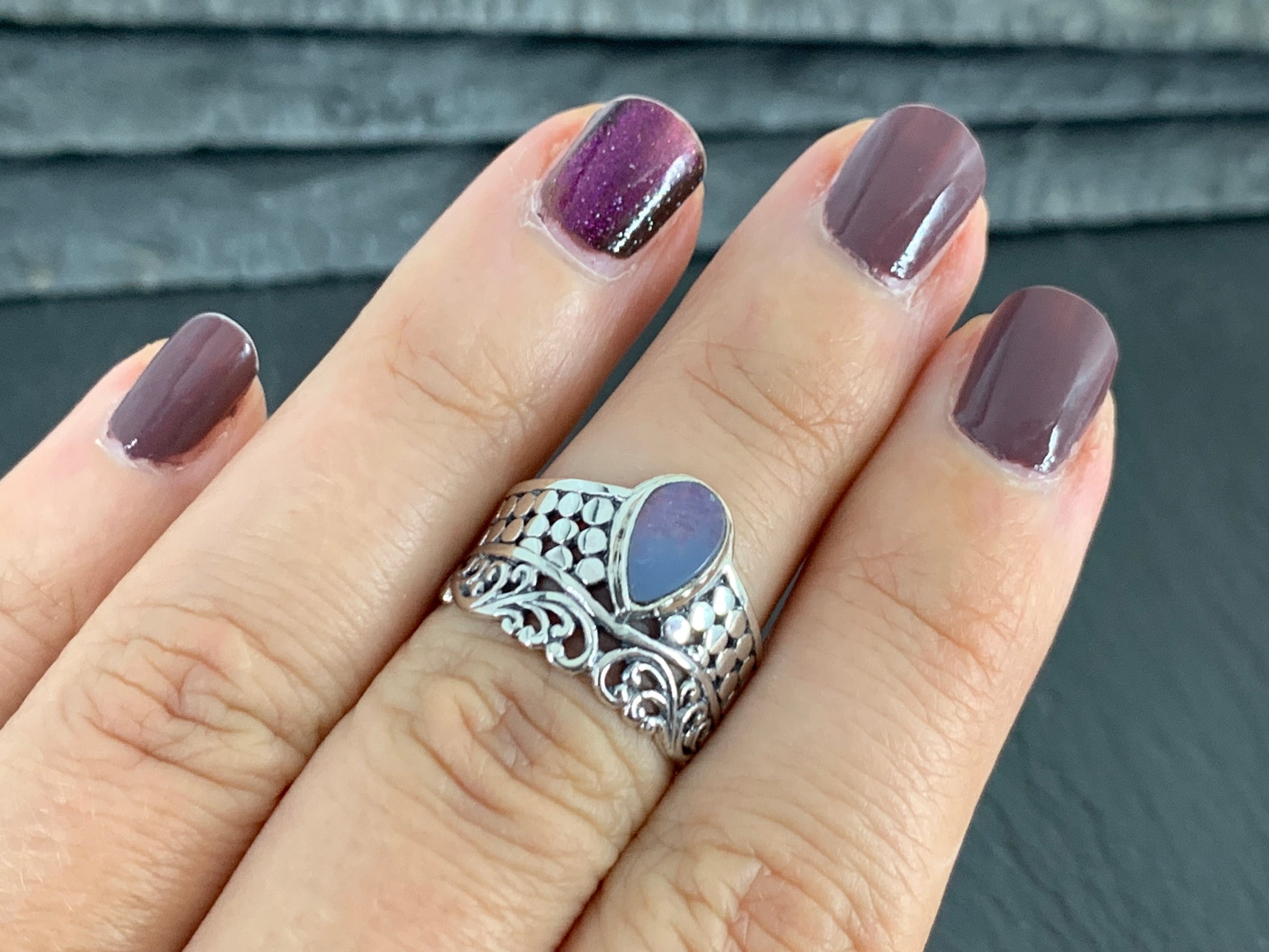 Sterling Silver Australian Opal Ring - Wide Band Statement Ring - size 6 US