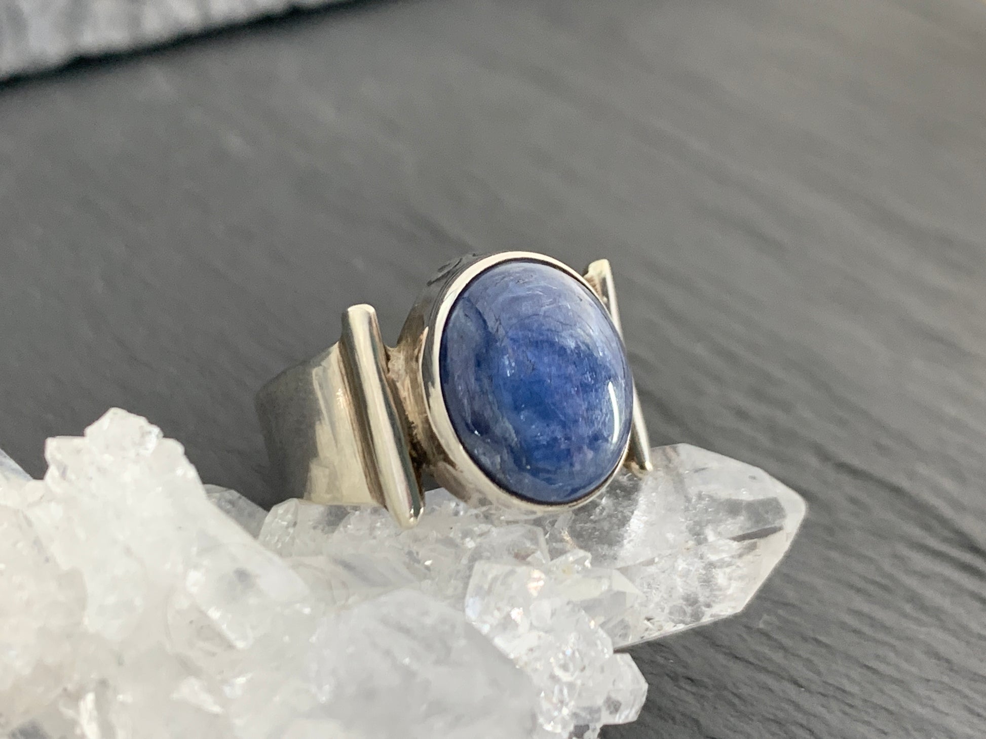 Sterling Silver Kyanite Ring – 9x12mm Oval Gemstone. Handmade Blue Crystal Jewelry