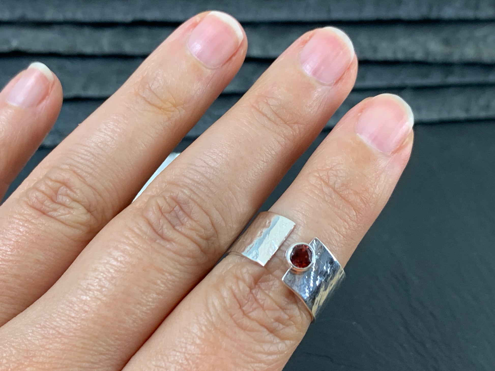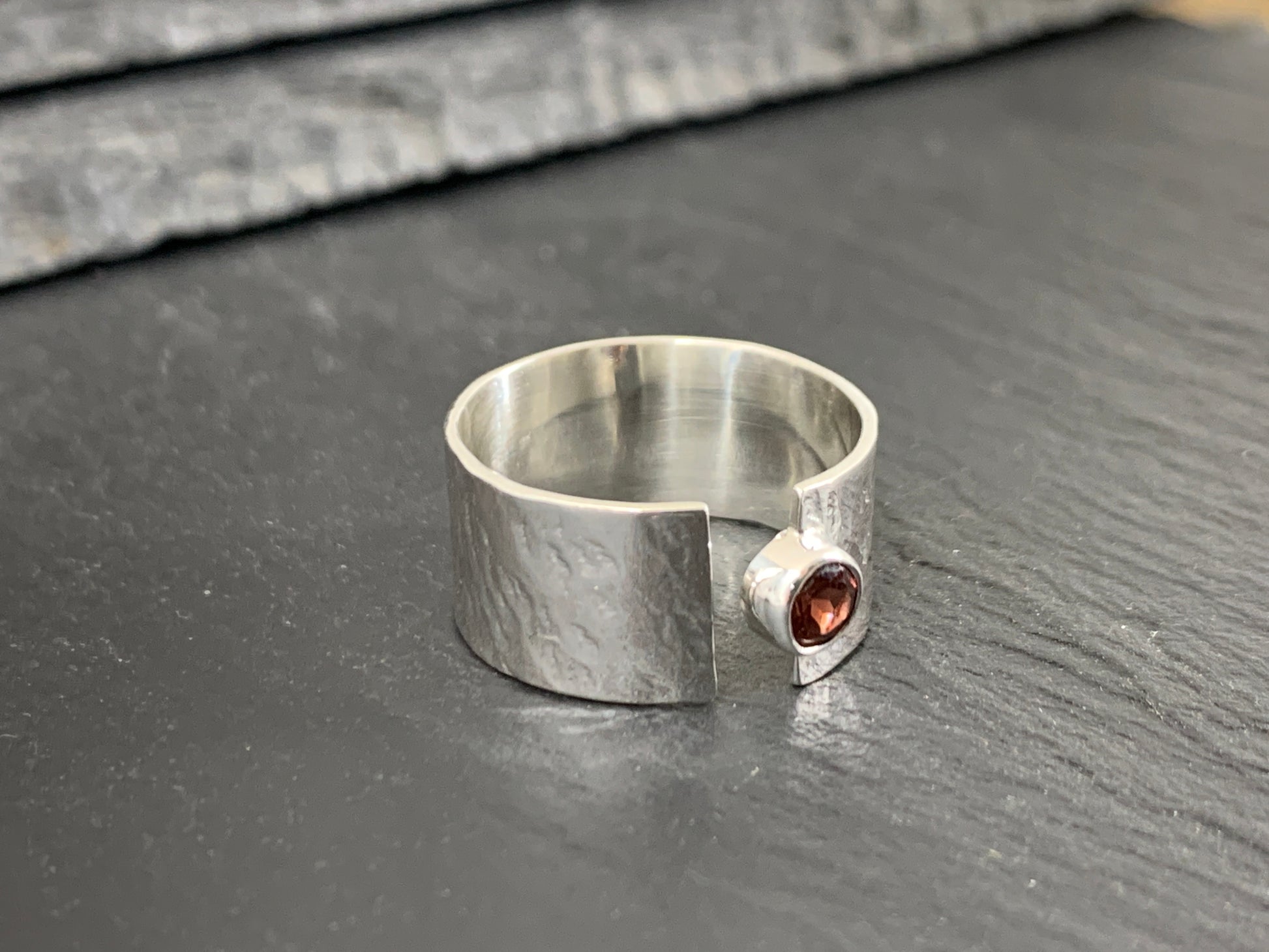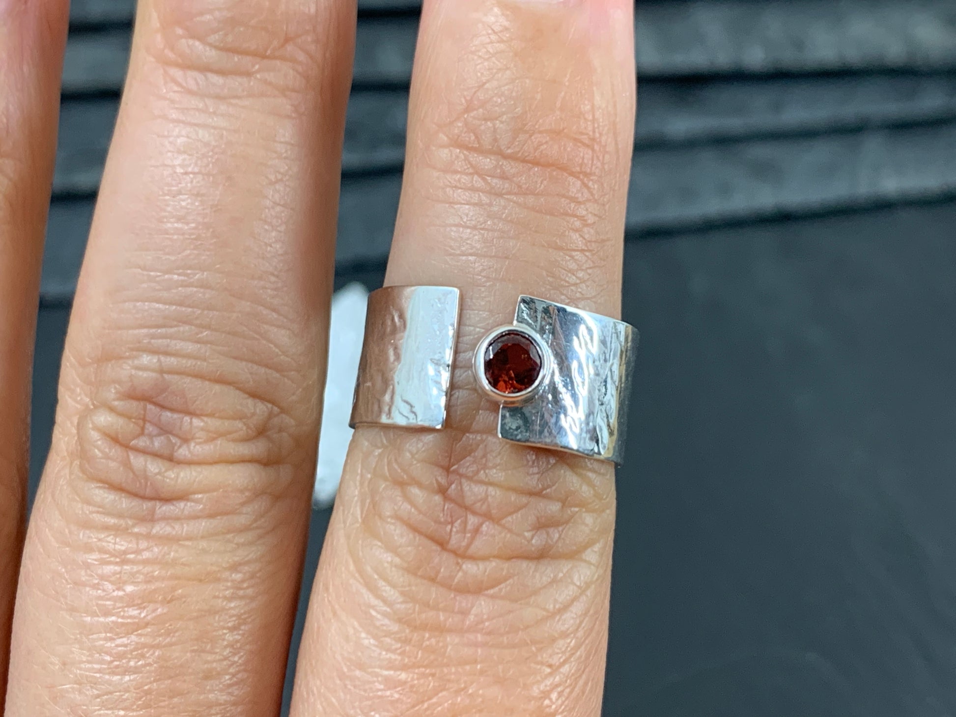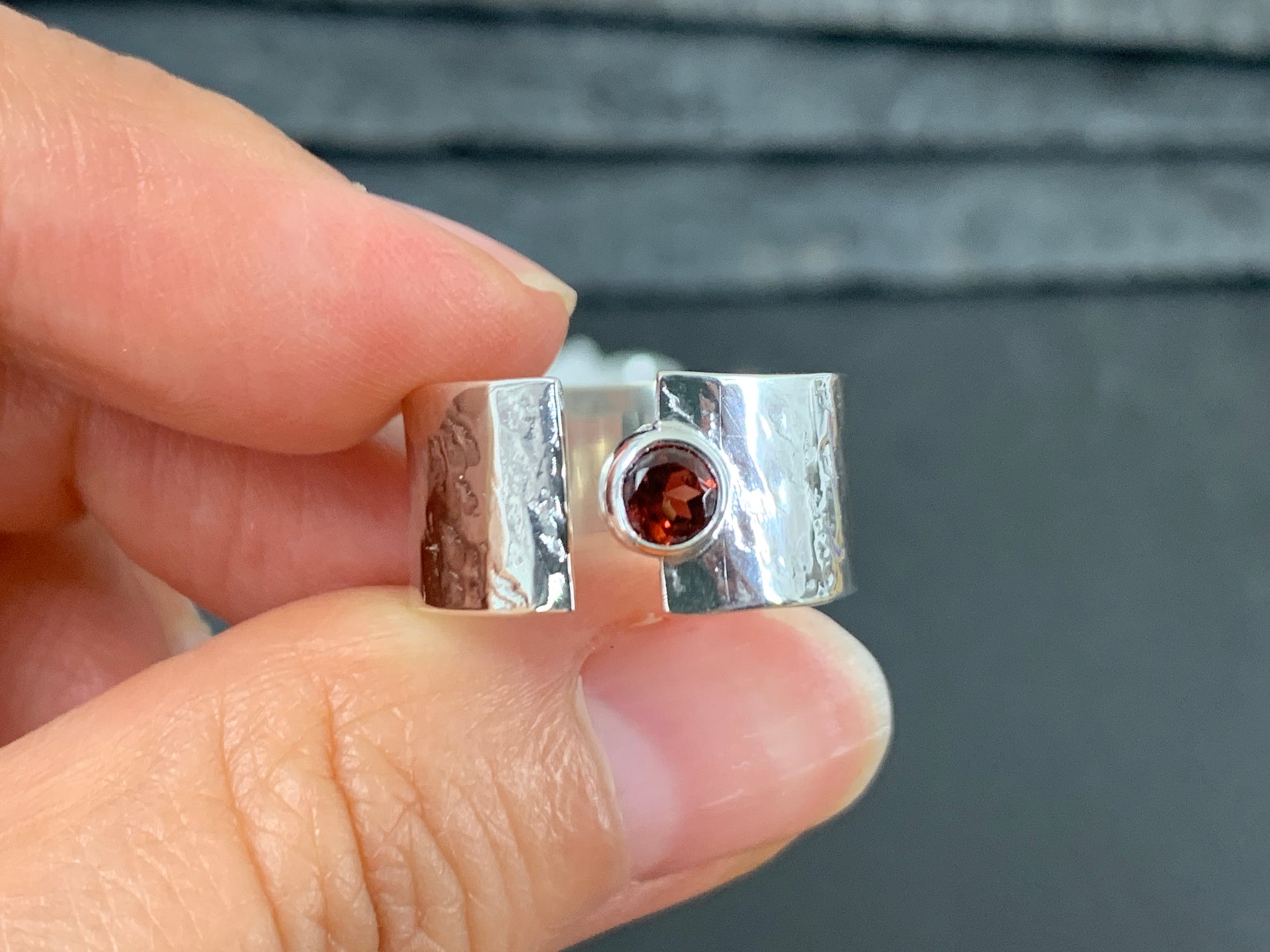 Sterling Silver Garnet Ring - Wide Band Statement Ring - size 7.25US