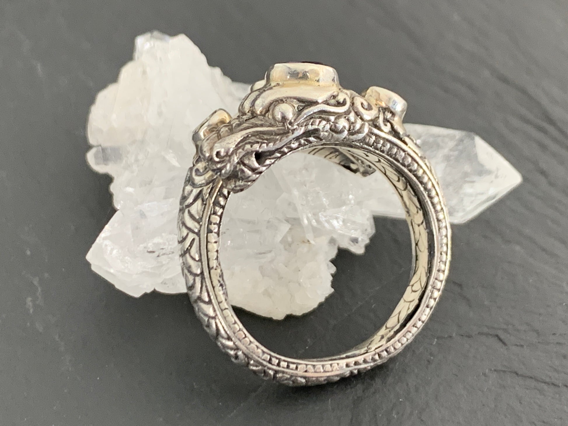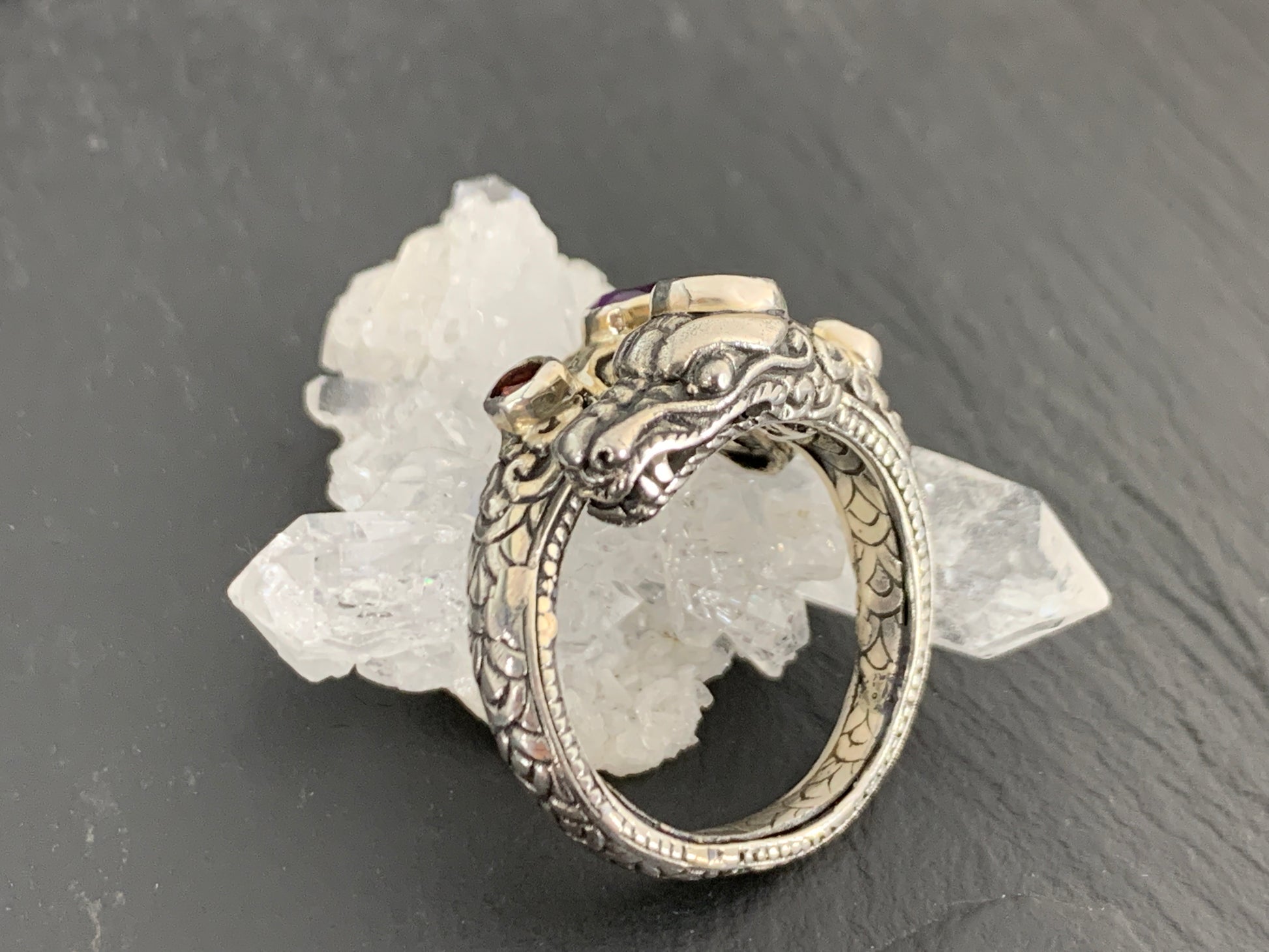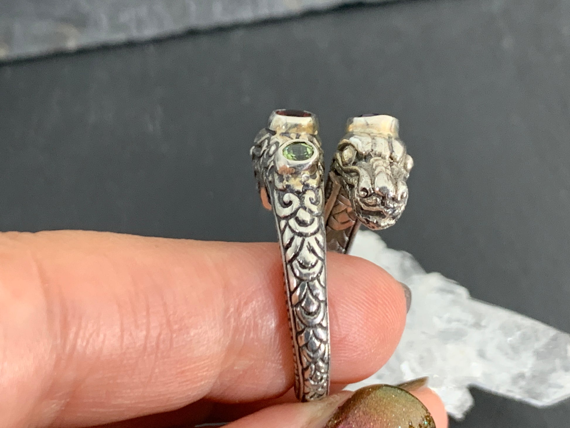 Sterling Silver Gemstone Rins – Amethyst, Peridot, Garnet. Ornate Boho Ring