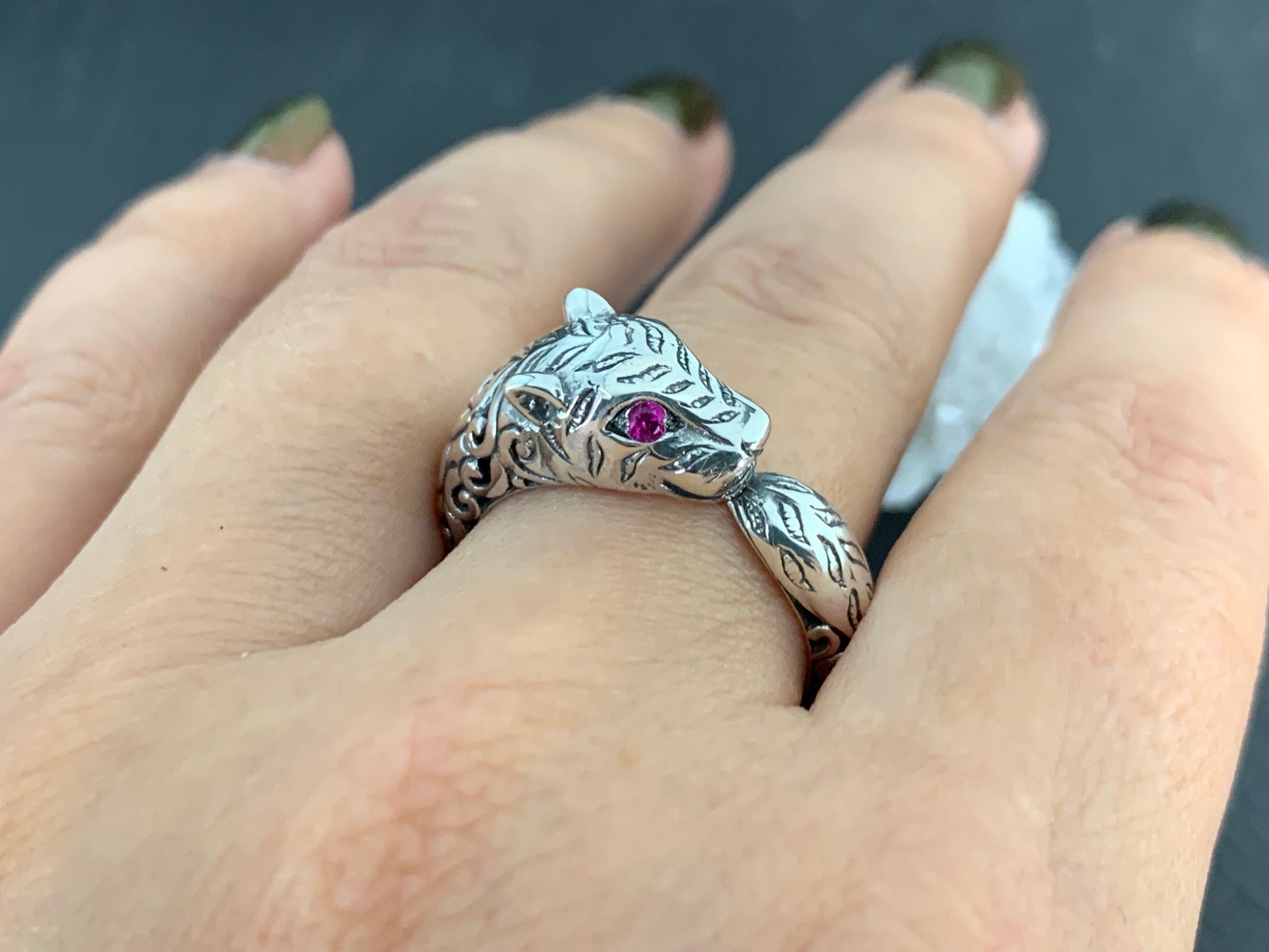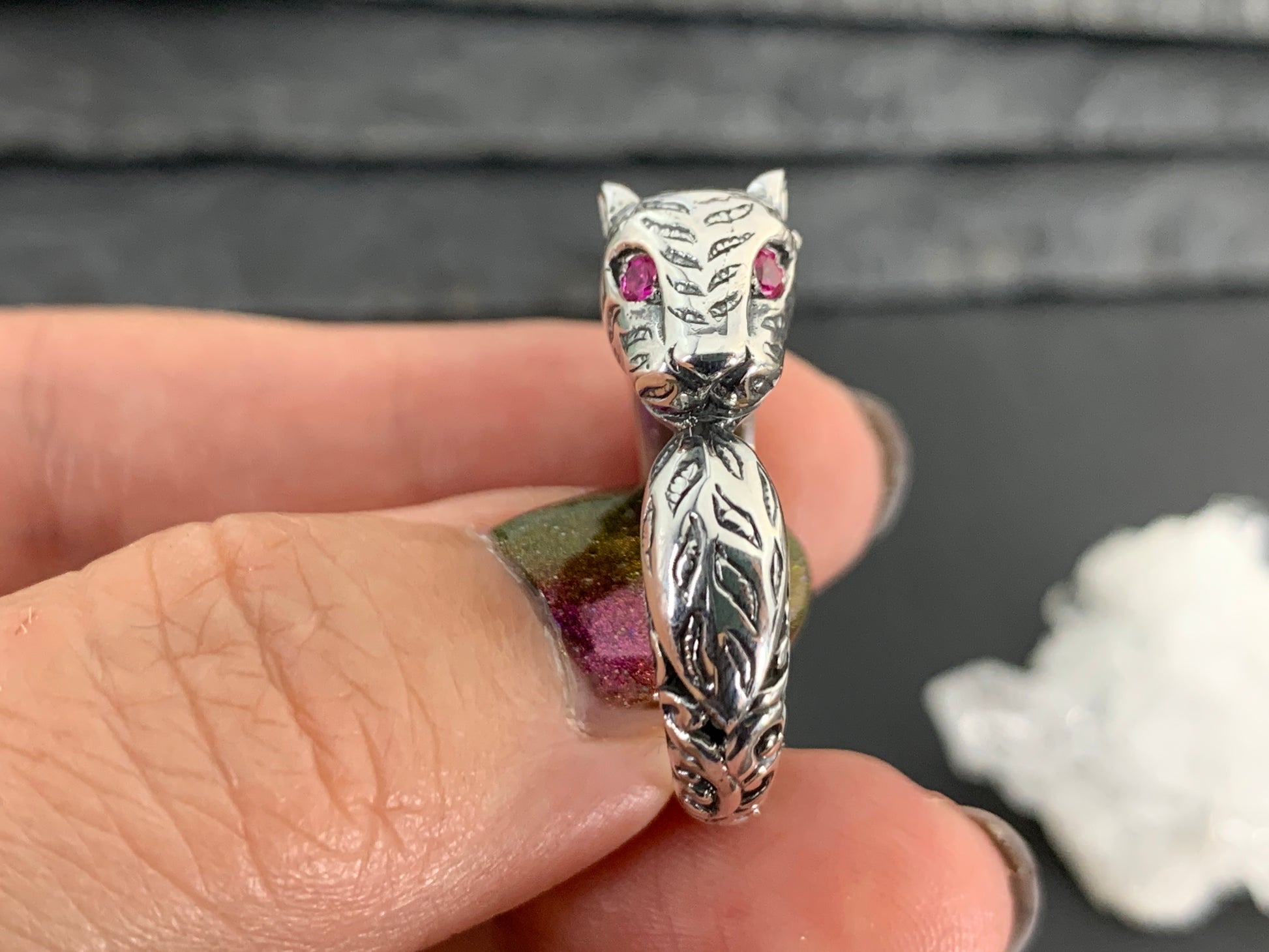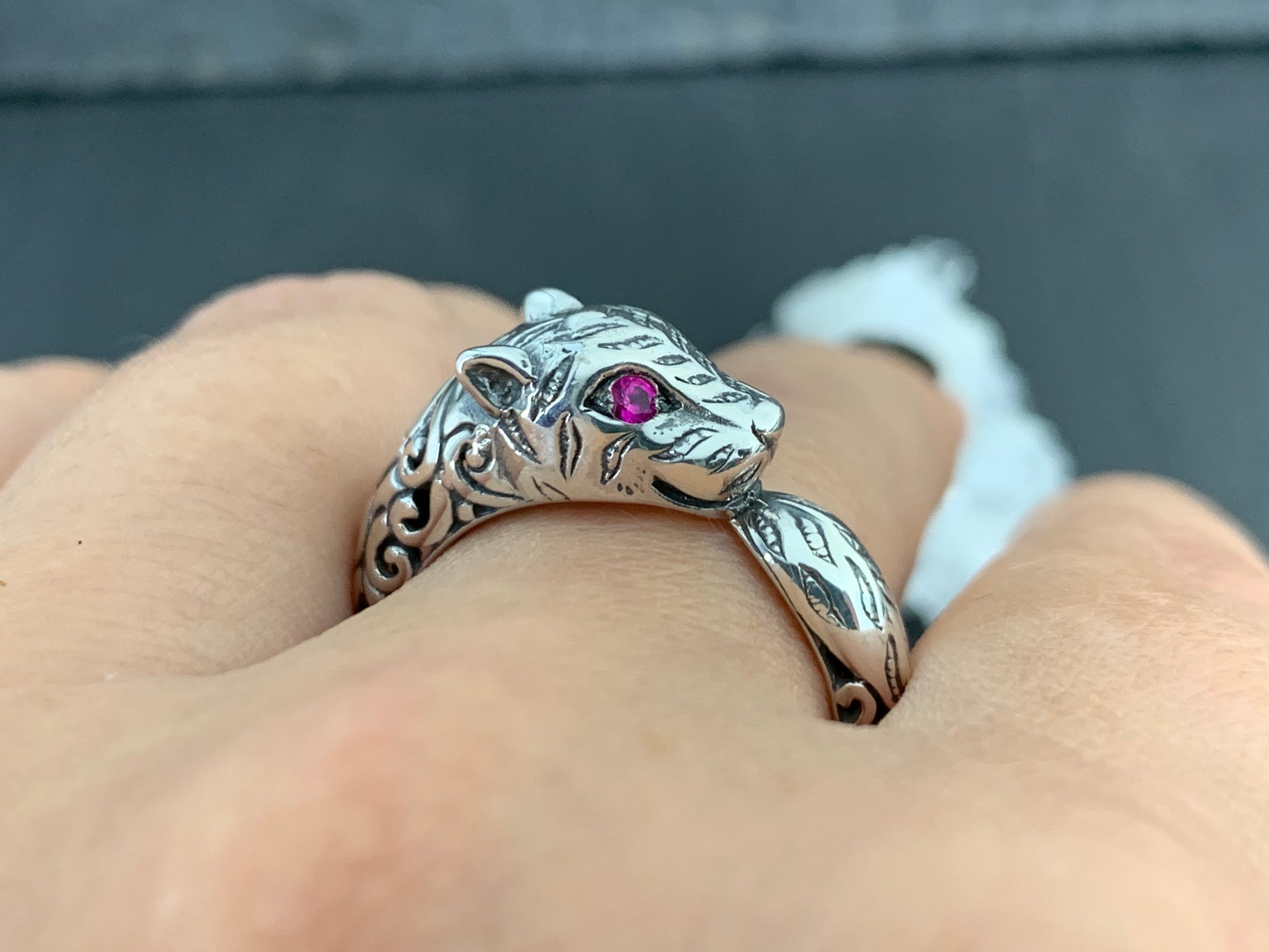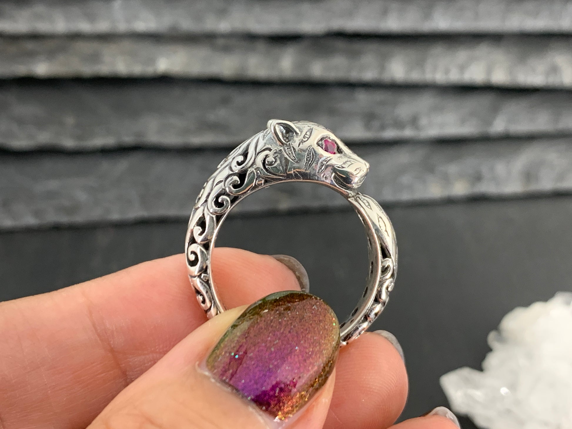 Sterling Silver Garnet Ring. Panther Ring – Gothic Animal Jewelry