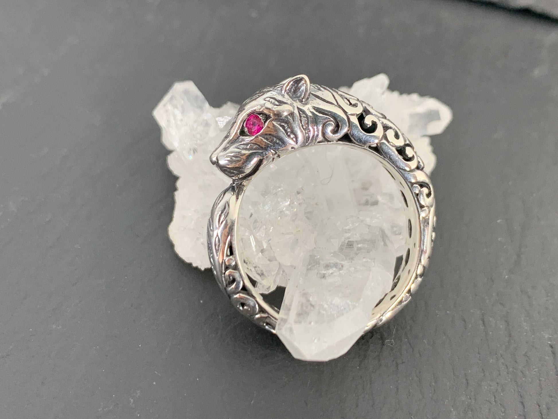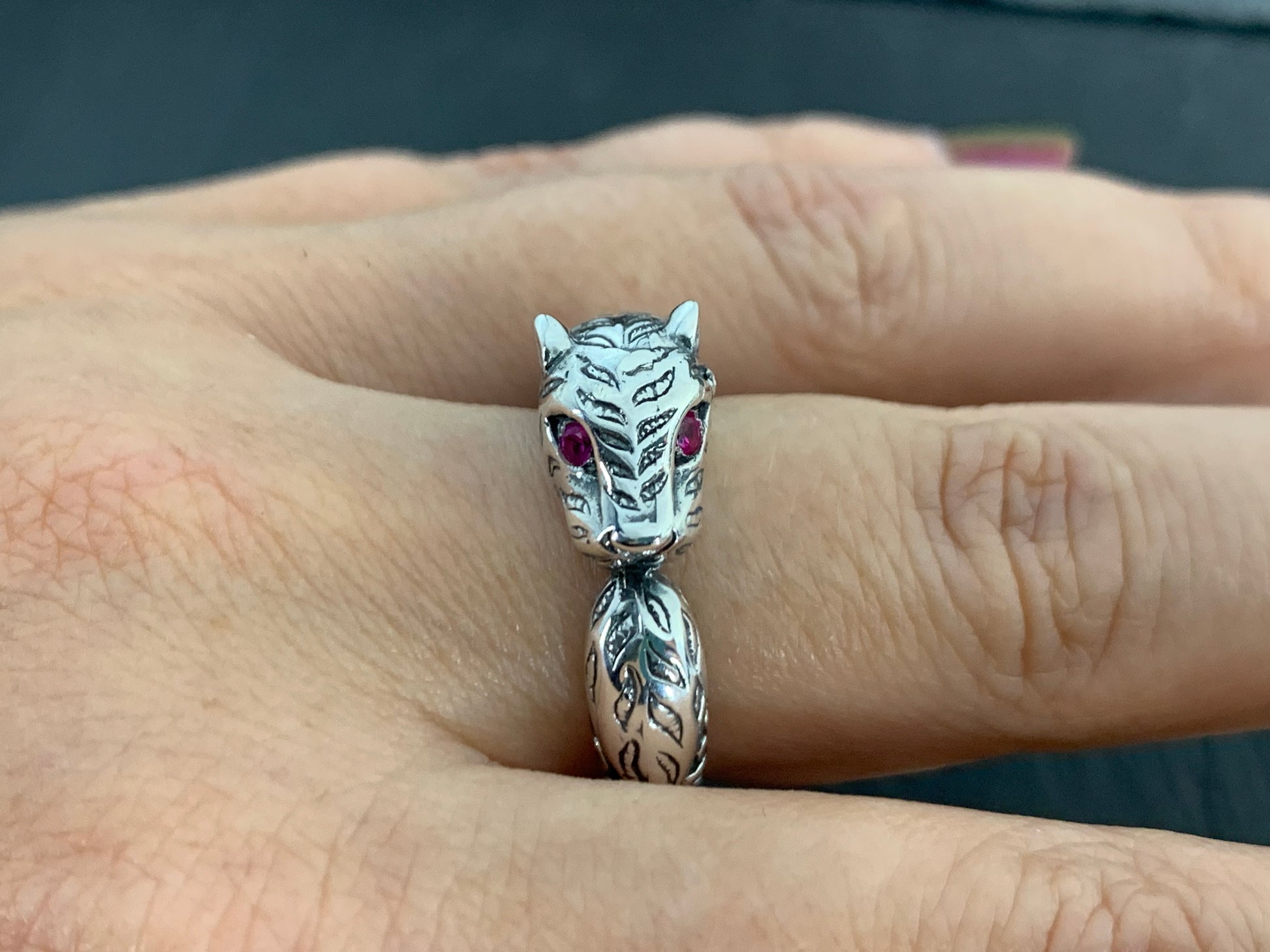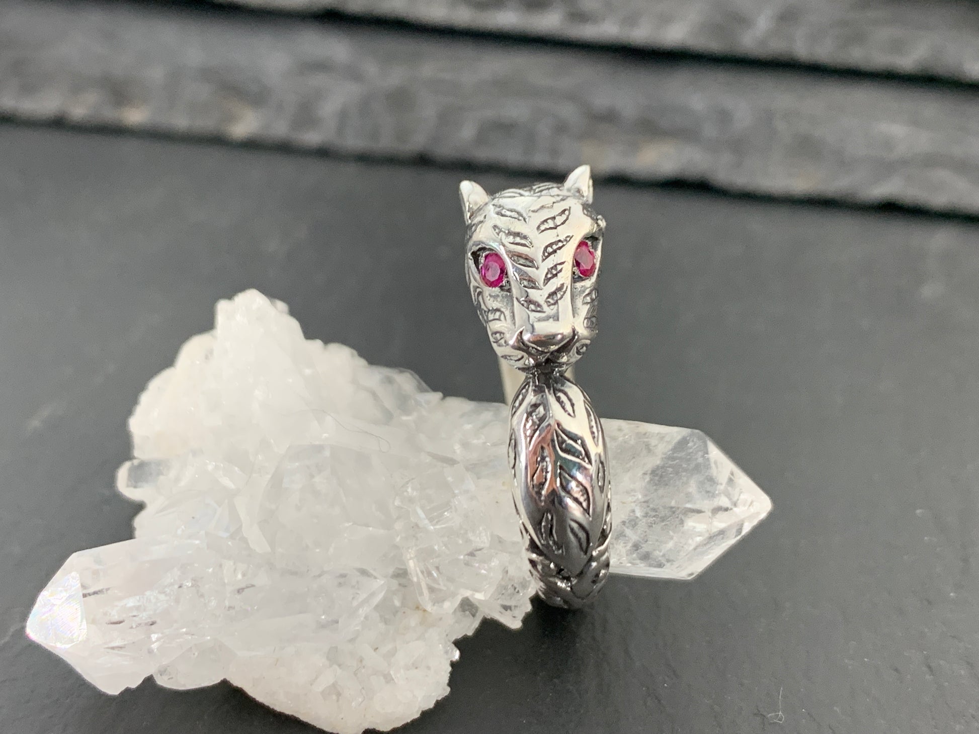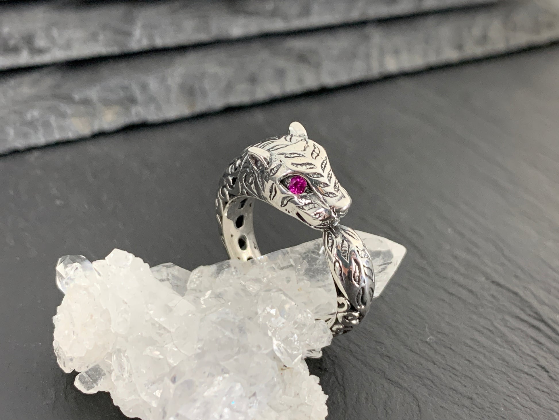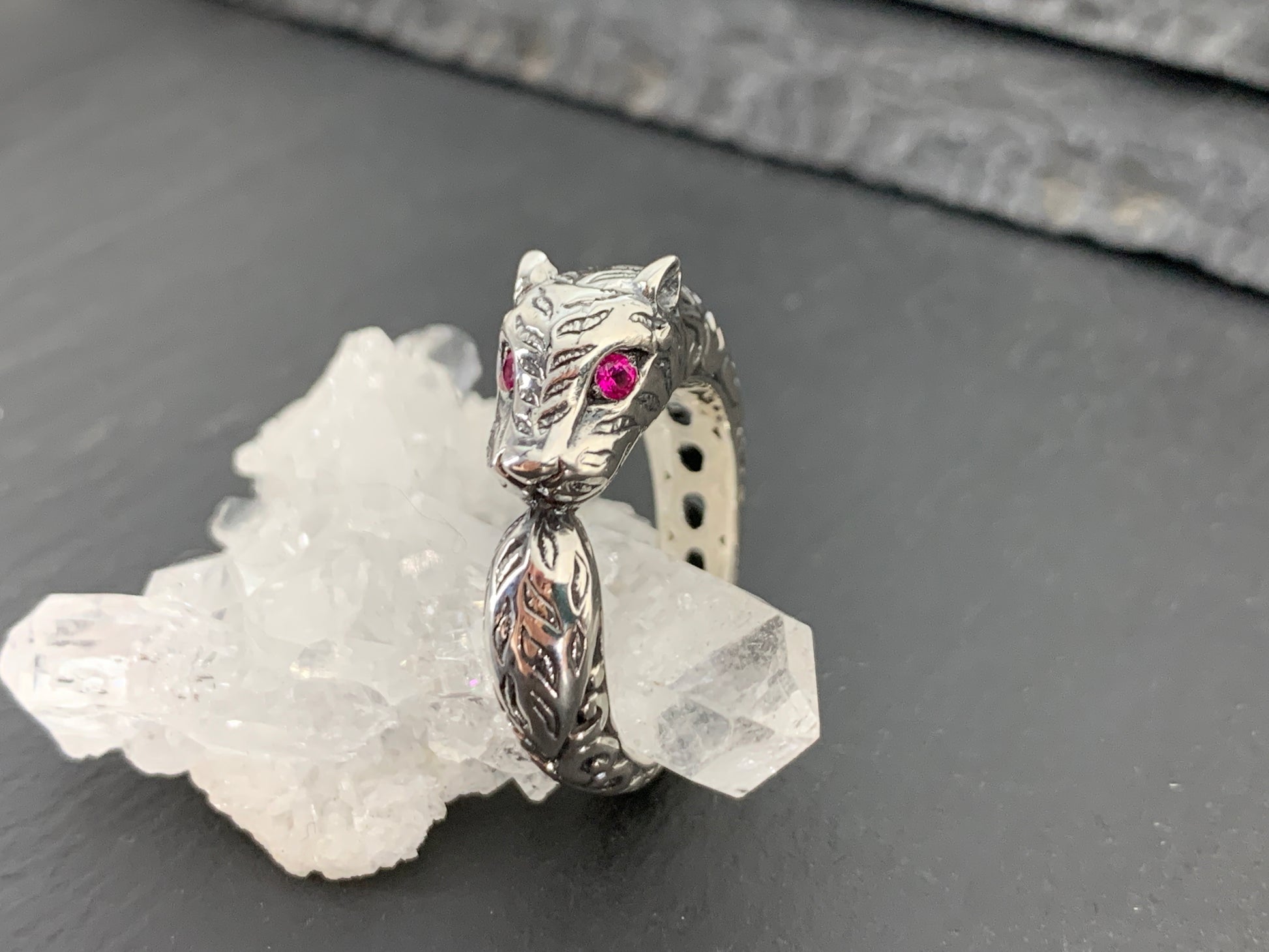 Sterling Silver Garnet Ring. Panther Ring – Gothic Animal Jewelry