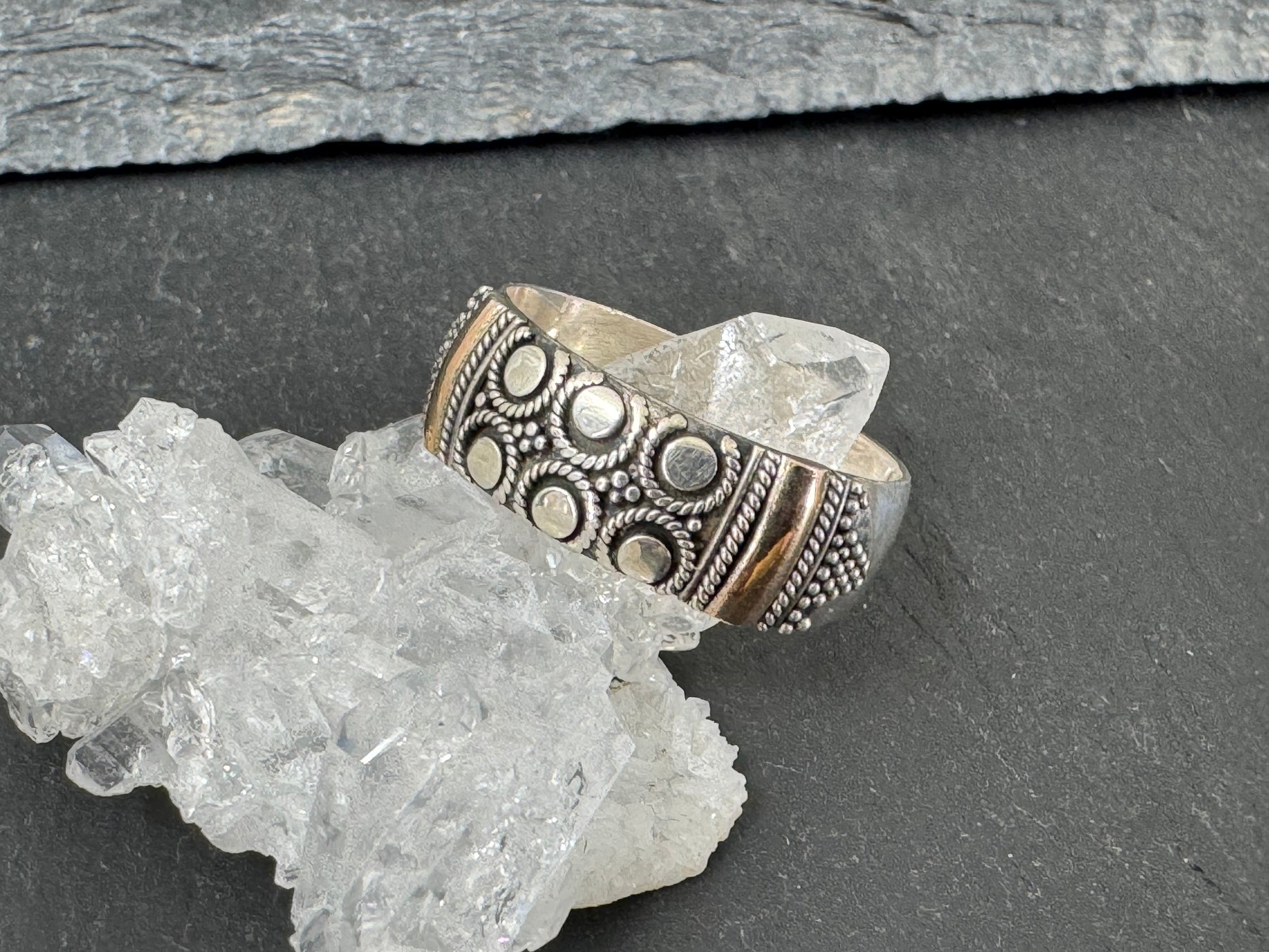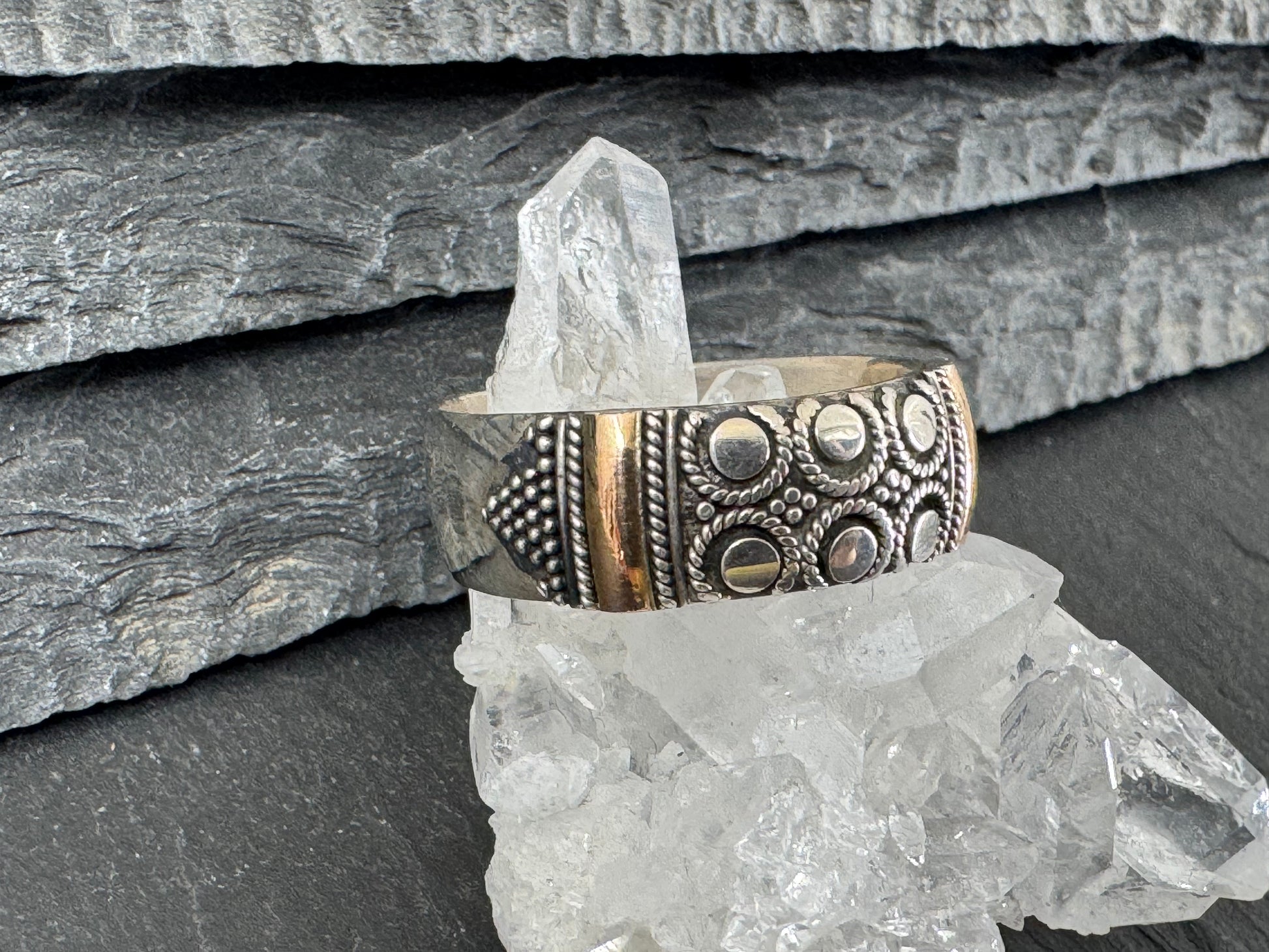 Tribal Sterling Silver Gold Platted ring 9.75US